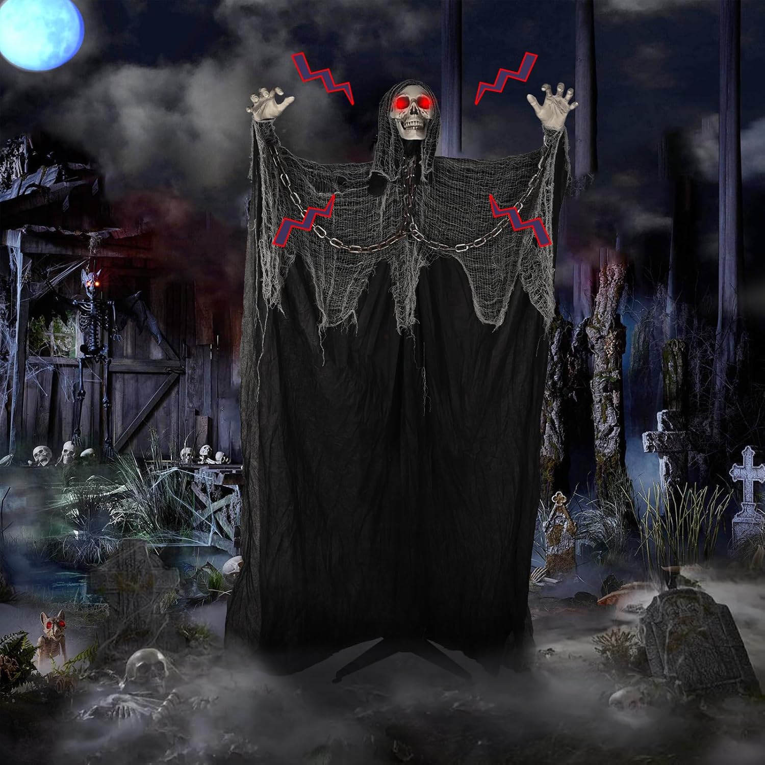 3 placement strategies, you possibly can place it anyplace you need.Glowing eyes, scary sounds, and swaying our bodies add to the horror ambiance.Battery-operated, no extension wire, extra handy to make use of.Sensor perform: voice and contact activation, the ghost will routinely begin while you contact it or make a sound.Adjustable design, you possibly can freely regulate each arms to stretch to any place you want.71” life-size, straightforward to put in, removable, handy for storage, and reusable.