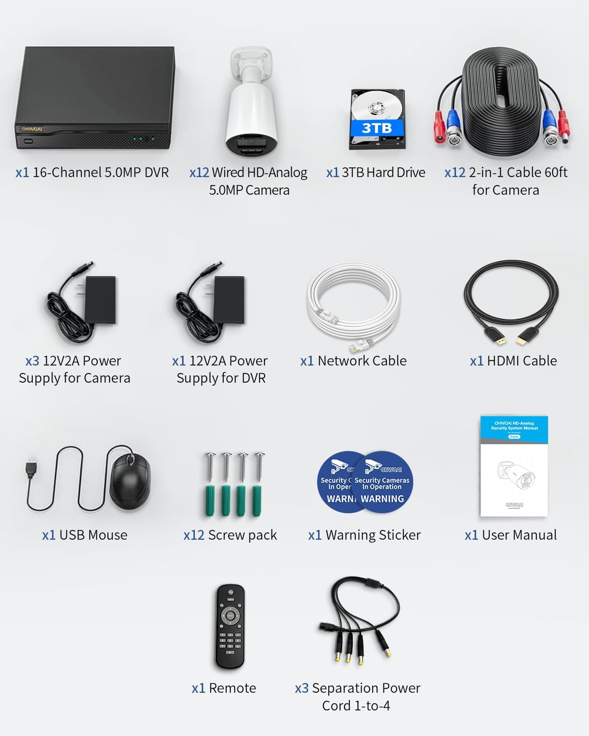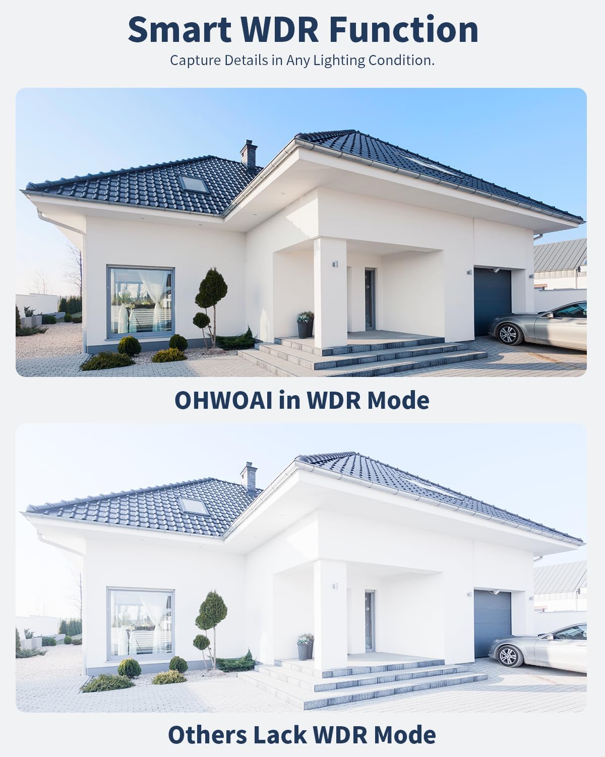 《80ft Tremendous Night time Imaginative and prescient》With a formidable 80-feet night time imaginative and prescient vary, OHWOAI residence safety digicam system ensures clear visibility even in low-light situations. Whether or not it is monitoring a big outside space or a dimly lit room, this wired outside safety digicam offers dependable surveillance protection day and night time.