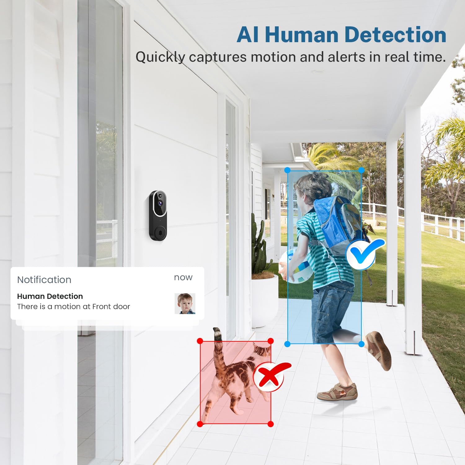 [Engaging 2-Way Communication & High-Definition Wide View]: Interact in reside two-sided chats along with your visitors, from any location. Watch clear, broad-angle reside footage, capturing each nuance. Two-way audio will solely activate while you press the doorbell button.