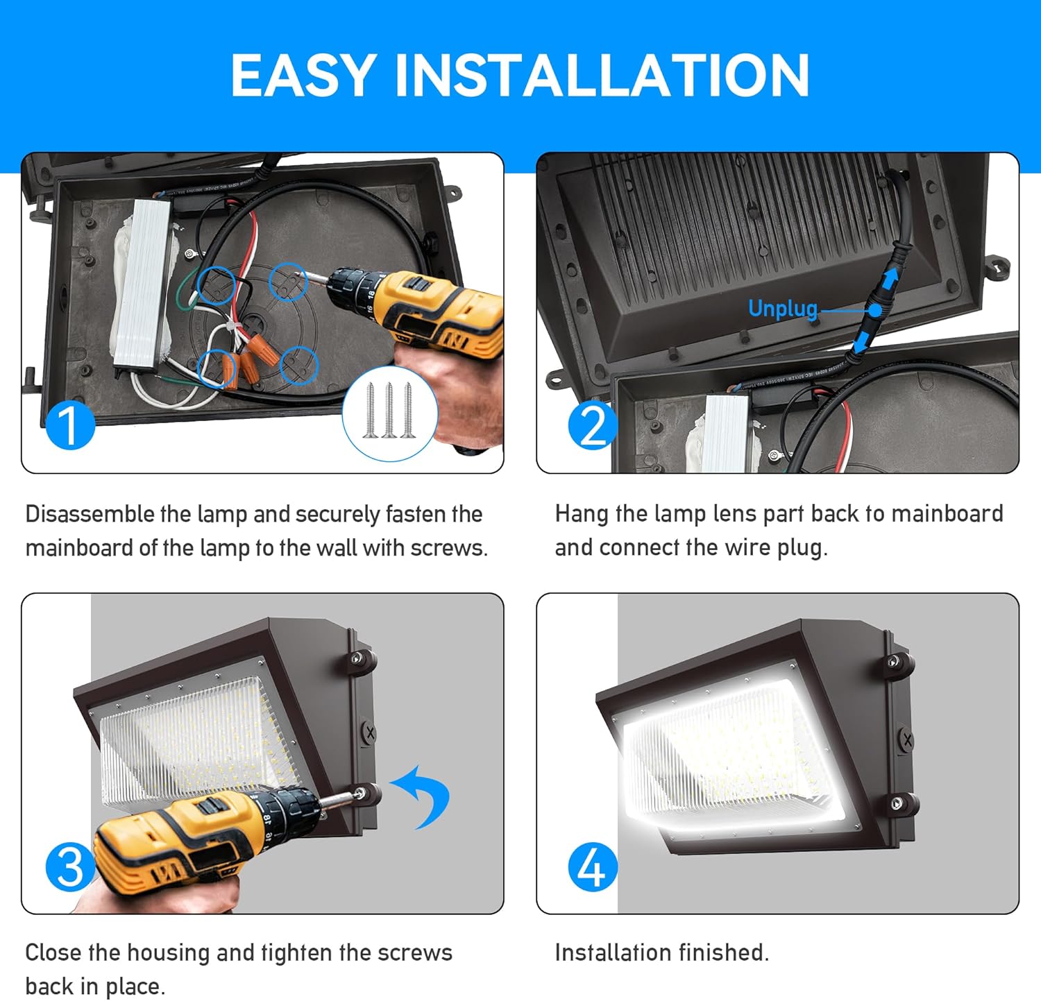 DURABLE FOR WIDE APPLICATION: Constructed with premium aviation aluminum, the industrial wall pack mild ensures excessive efficiency over 60,000-hours of use for garages, warehouses, parking heaps, retailers, streets, yards, residence complexes and lots of different locations.