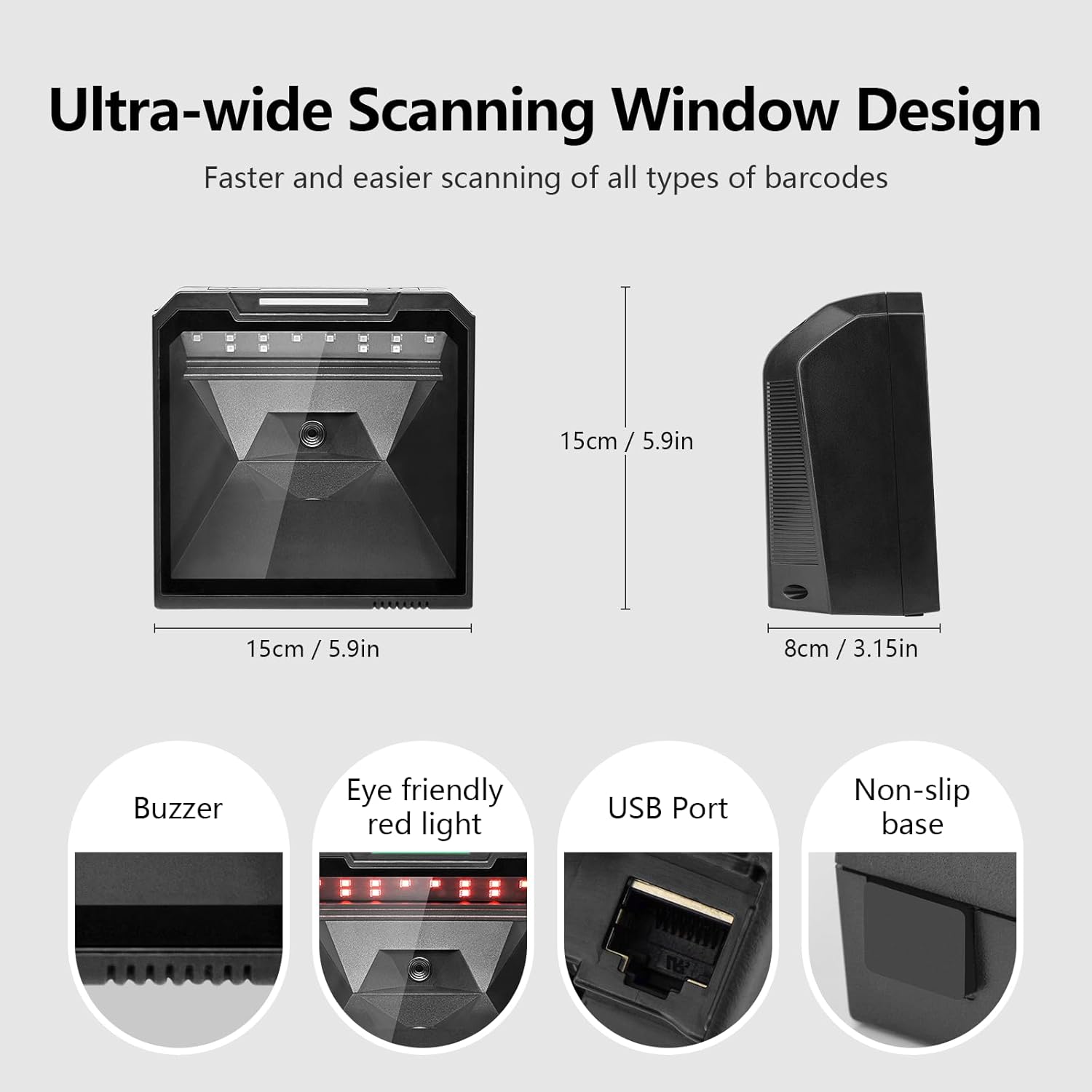 Palms-free & Compact Design: In contrast with handheld barcode scanner, our handsfree barcode scanner with a ULTRA-WIDE window, in contrast with different desktop scanners in the marketplace, it has wider studying angle, it’s extra freed from your palms, no want to select up the scanner or press any buttons if you scanning.