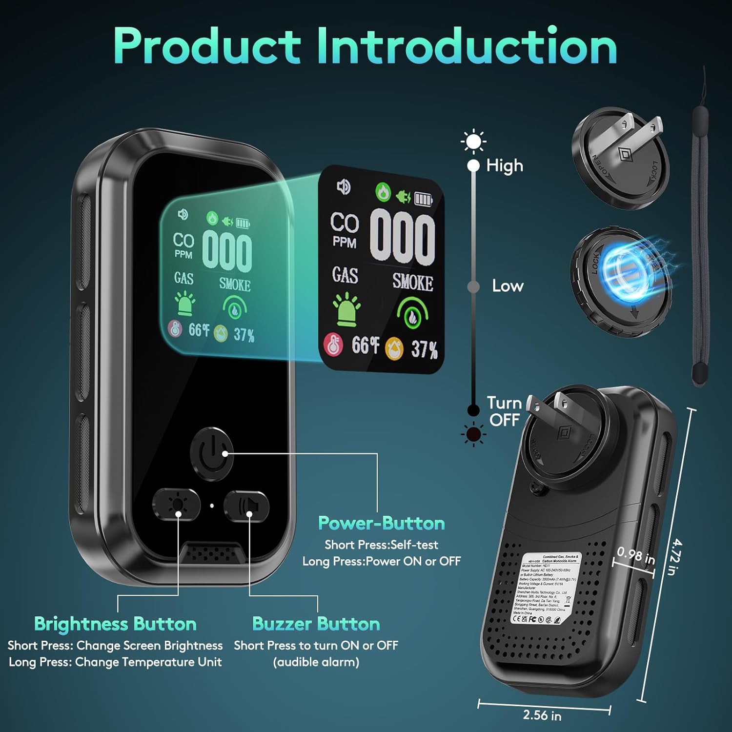 Our 5-in-1 carbon monoxide detectors plug in, smoke alarm and carbon monoxide detector is designed to guard your private home or workplace from a number of hazards. Outfitted with high-precision sensors, this co detector can detect smoke, carbon monoxide, and flamable gases shortly and precisely. The smoke and carbon monoxide detector makes use of superior photoelectric expertise for smoke detection and extremely steady electrochemical sensors for carbon monoxide detection. With a transparent HD digital show display, this plug in carbon monoxide detector refreshes knowledge each 2 seconds, offering real-time readings. The three-stage alarm system consists of each visible and audible alerts, reaching 85 decibels to make sure your security. It may be powered by AC 100-240v or by means of its built-in lithium battery, providing versatile set up choices. The plug in smoke detector is designed to be moveable with a detachable plug, making it straightforward to maneuver round for optimum safety. The backlight of the show mechanically turns off when not plugged in to preserve battery life. Whether or not you are in search of gasoline detectors for residence pure gasoline or gasoline and carbon monoxide detectors, this machine has all of it.