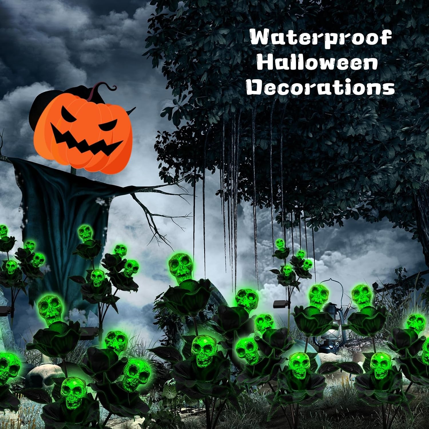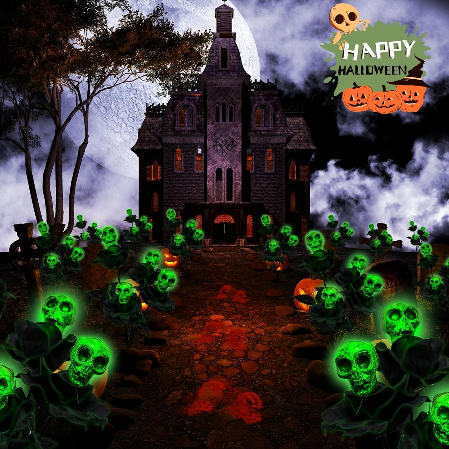 【Out of doors Halloween Decorations】These photo voltaic Halloween lights include creepy cranium roses that look tremendous scary. Spooky cranium rose swaying in wind, emitting a inexperienced glow that create a mysterious and spooky ambiance in your backyard. These out of doors decorations are perfect for Halloween evening. It is good for backyard, patio, path, garden, haunted homes and occasion.