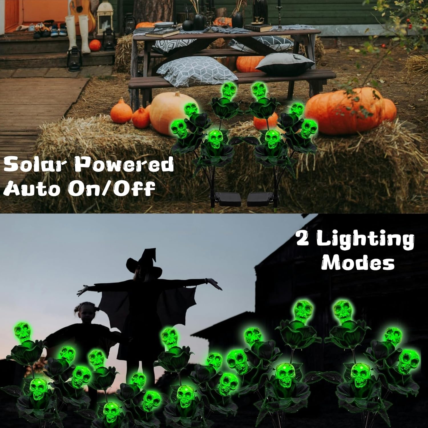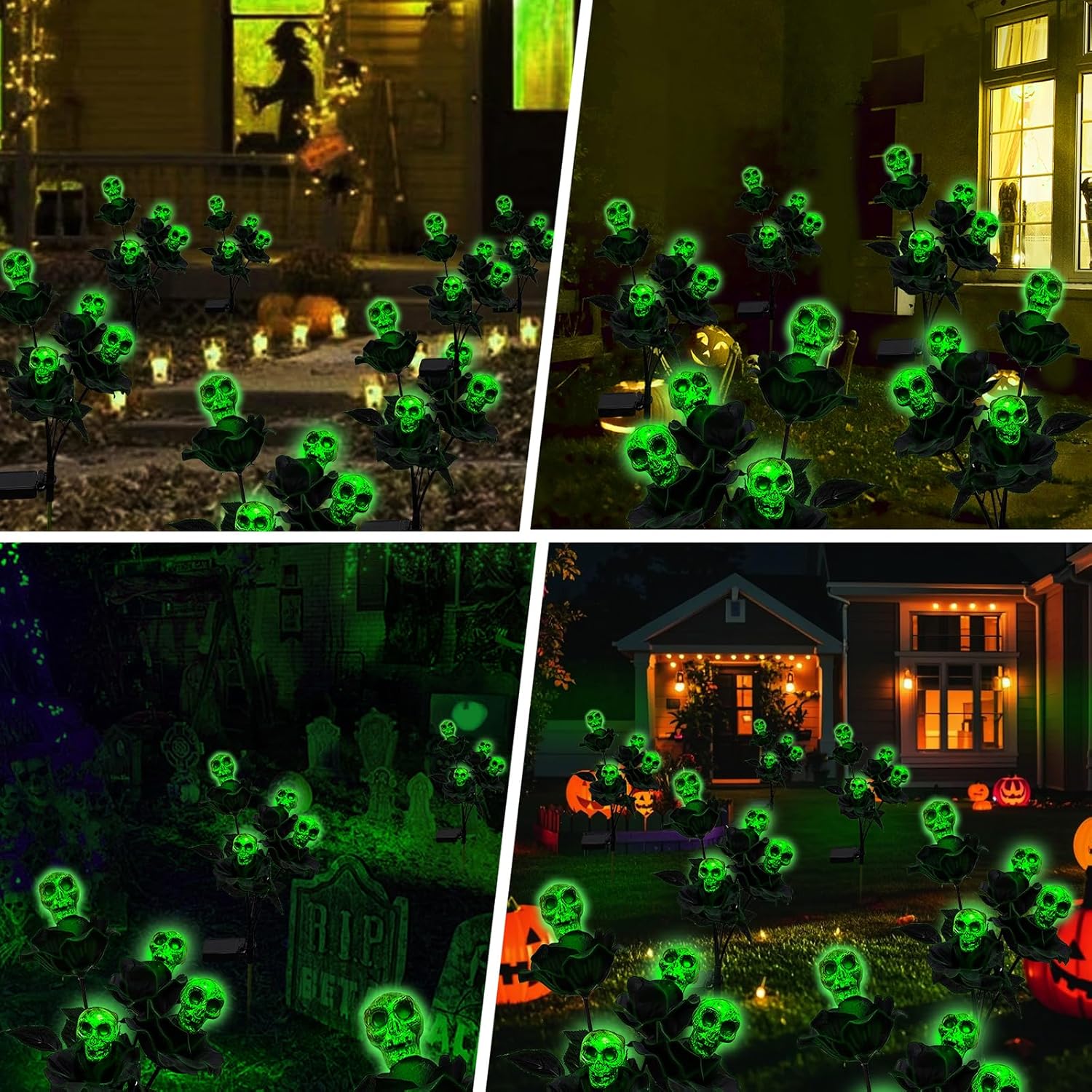 【Swaying Photo voltaic Cranium Rose Lights】The branches are tender and versatile, when the wind blows, the photo voltaic cranium rose lights sway with the wind and provides off a inexperienced glow at evening. Every set consists of 2 packs of 8 LED lights formed like cranium roses that make your out of doors house stuffed with Halloween ambiance.