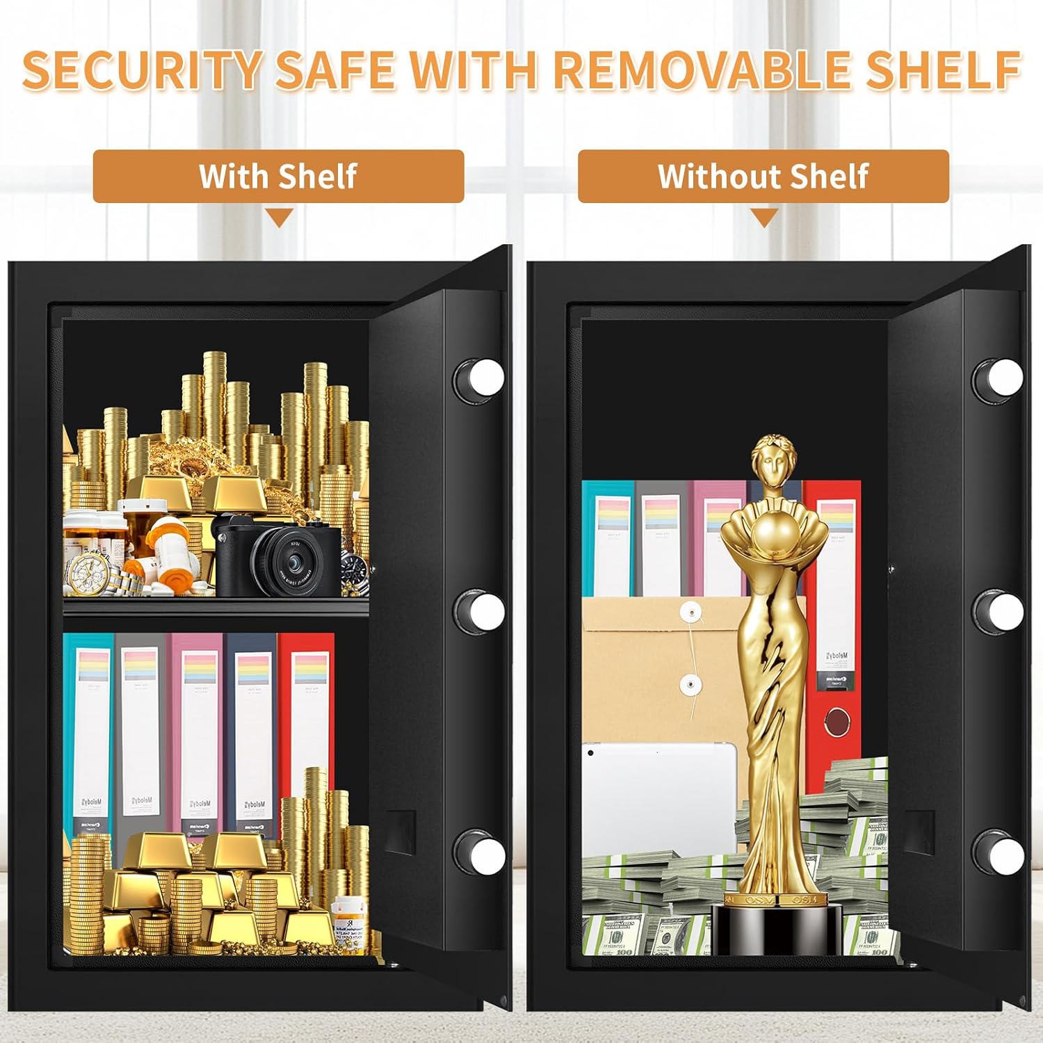 【REMOVABLE SHELF AND LED LIGHT】: The detachable shelf can assist you set up vital gadgets simply, and you’ll take it in or take it out in keeping with your wants. The two.6 cubic capability secure can meet your each day storage wants and may be very appropriate for safeguarding your valuables and privateness, corresponding to pistol, paperwork, passport, jewellery and so forth