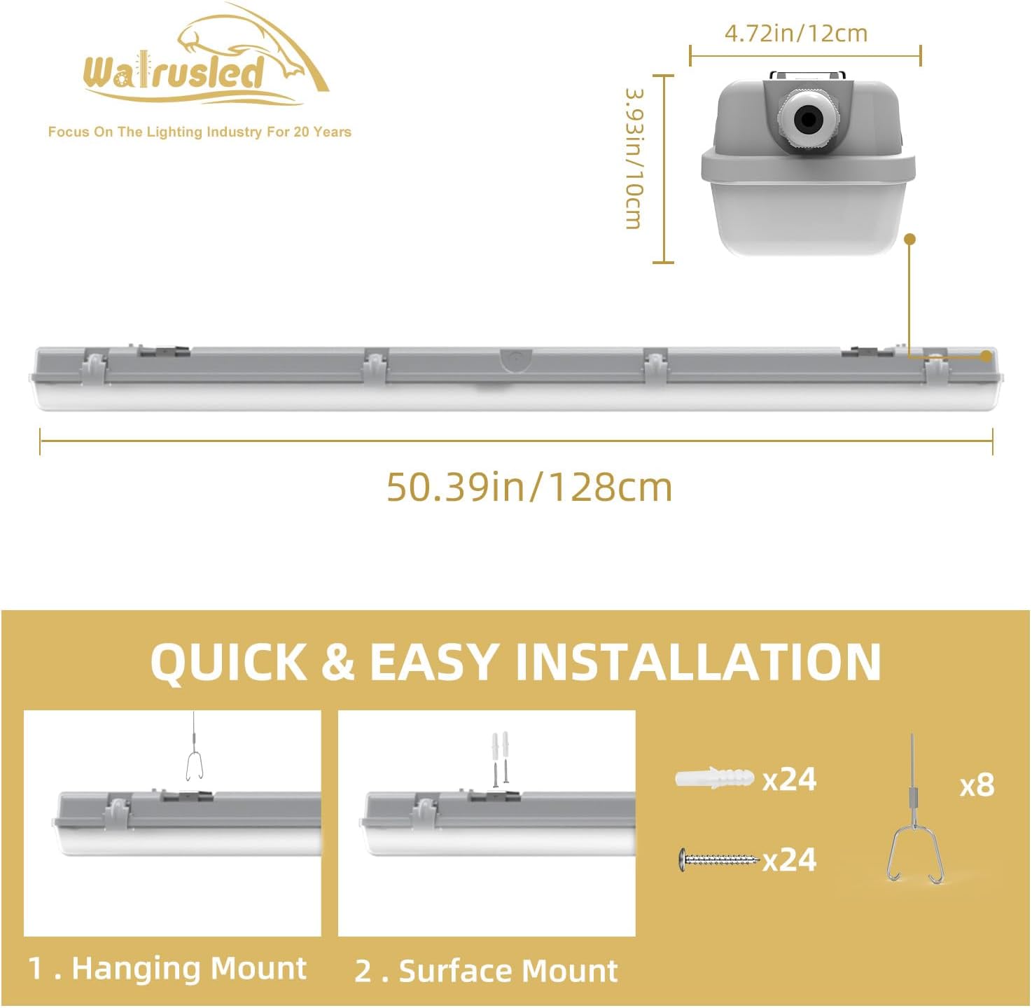 💡 【CCT & Wattages Selectable】 Walrusled 48 Inch led warehouse wrap waterproof hanging batten gentle fixture options with 3 sorts of colour temperature 3000K/4000K/5000K and a pair of wattages 20W (2500lm) /40W (5000lm), which presents smooth and uniform gentle distribution by means of your house, sturdier development, and no yellowing over time. You may select any colour temperature and brightness to create probably the most appropriate lighting in your exercise or surroundings, resembling kitchen, stroll in closet, laundry room, warehouse, workshop, workbench, utility room, storage room, craft room, basement, hallways, workplace and and so on….