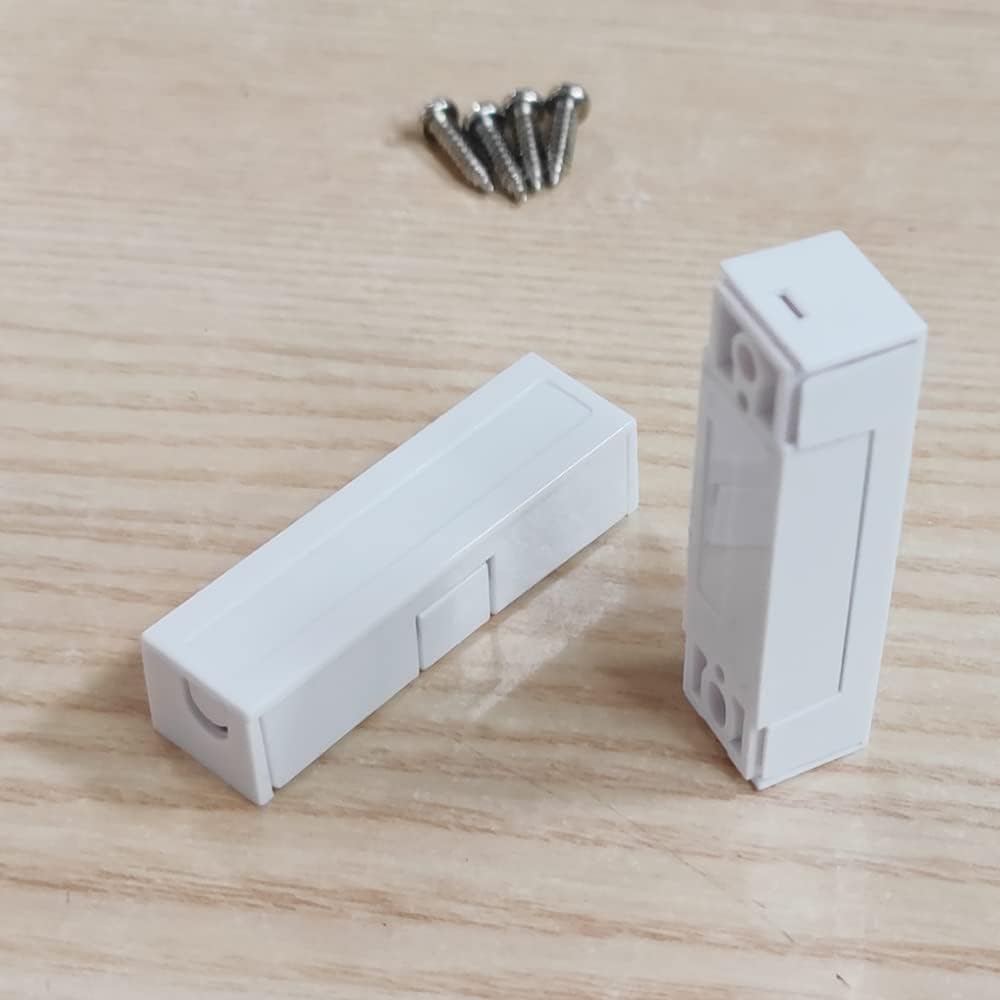 Magnetic contacts is broadly used for alarm system(panel) to detect state of door. It include a reed swap half and a magnet half . When door closed, reed swap is effected by magnet and switch ON; when door open, reed swap is effected by magnet and switch OFF, set off alarm.