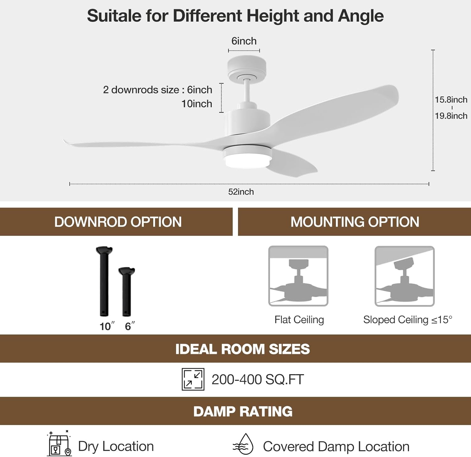 πγ Our trendy wooden ceiling followers include 2 down-rods(6 & 10 inch) for various ceiling top, and flush and vaulted/sloped mounting smaller than 20Β°. IP20 waterproof damp-rated indoor outside ceiling fan fits for indoor bed room front room kitchen eating room and lined outside patios porch gazebo. Nonetheless, please be aware that our damp-rated exterior ceiling followers shouldn’t be uncovered to water.