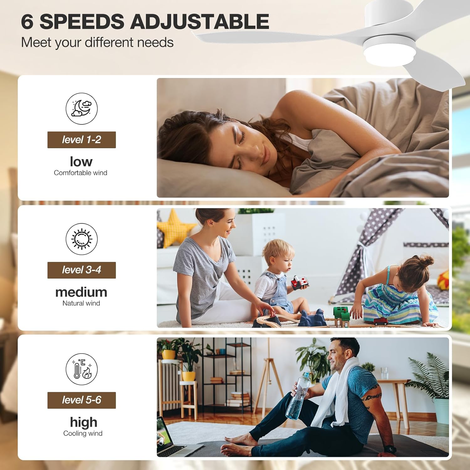 γ With color-changing gentle (3000K heat yellow gentle, 4000K vivid daylight, 6000K cool white gentle), dimmable from 0%-100%, create desired ambiance for working, leisure, get together. With 2000 lumens, the LED lights are vivid sufficient to light up your entire main bedroom. 6 variable pace to regulate for various wants, and delivers excessive CFM airflow as much as 8458. Noise of the fan is lower than 35db in pace 1-2.