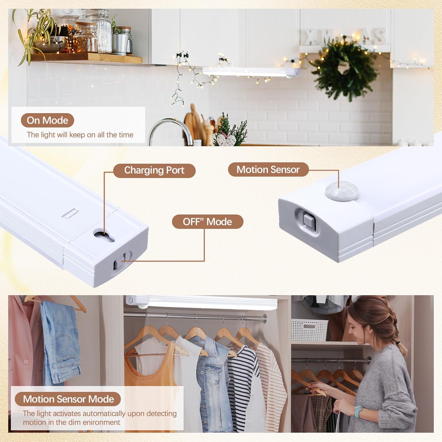 Illuminate Your House: designed with white LED lights, the movement sensor closet gentle rechargeable supplies comfortable but highly effective sufficient brightness, making certain you’ll not stumble at midnight; The charming white glow they emit enhances your room’s general visibility with out straining your eyes, making your area cozier and extra inviting