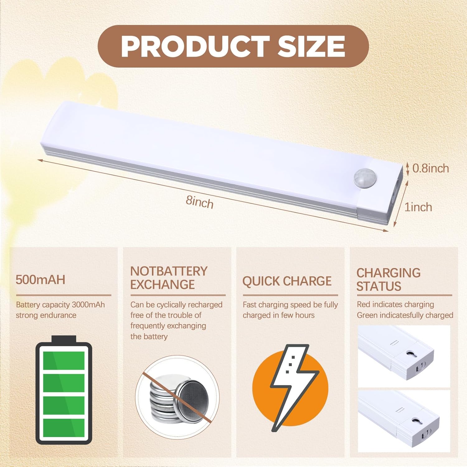 Unbox a Complete Bundle: the bundle comprises 8 rechargeable kitchen lights underneath cupboard, promising a plentiful provide in your underneath cupboard illumination wants; Every gentle is reliably designed and poses a number of software potentialities, offering ample lighting assets for bigger areas or a number of rooms
