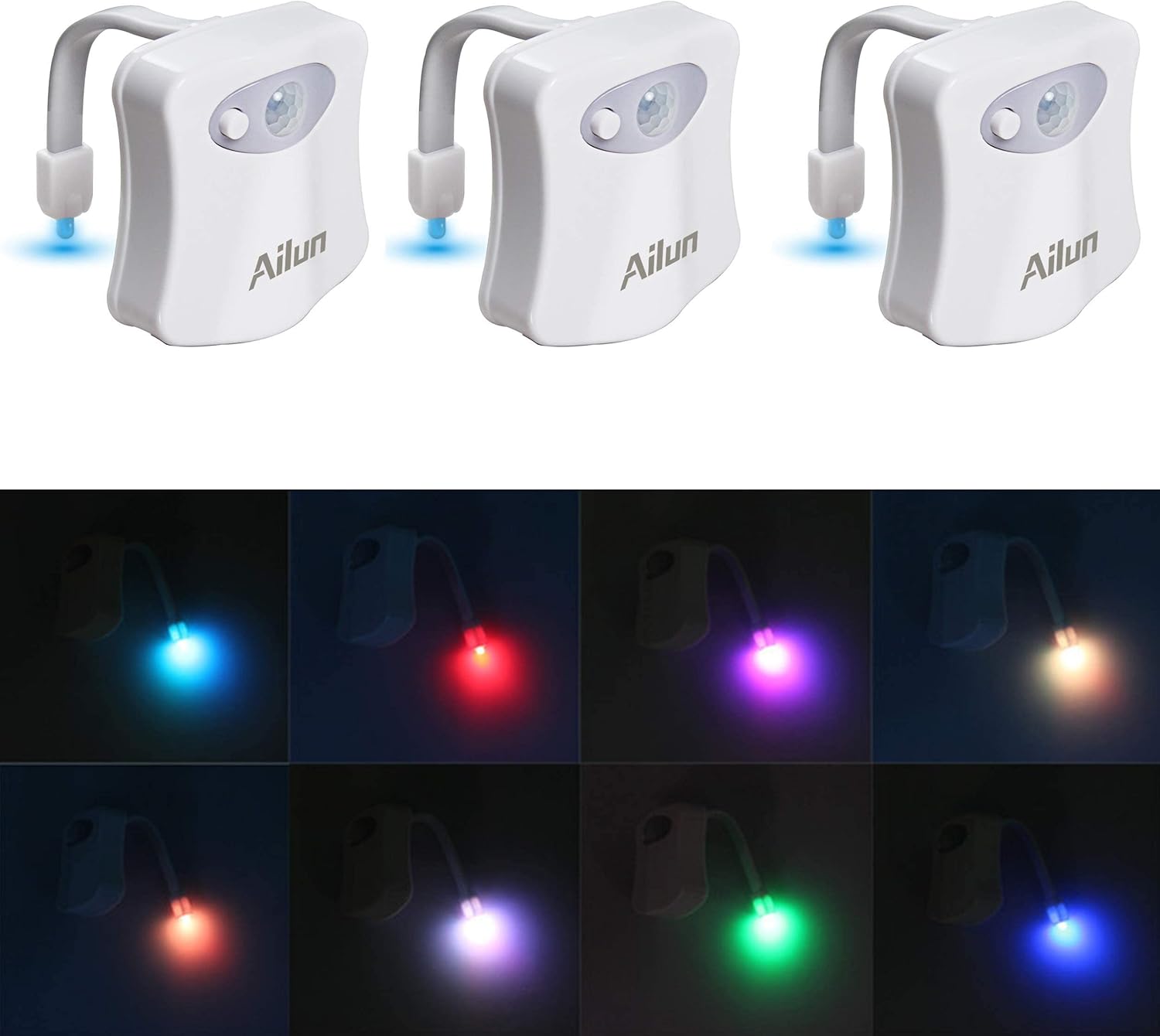 Ailun Toilet Night Light 3Pack Motion Activated LED Light 8 Colors Changing Toilet Bowl Illuminate Nightlight for Bathroom Battery Not Included Perfect Decorating Combination with Faucet Light