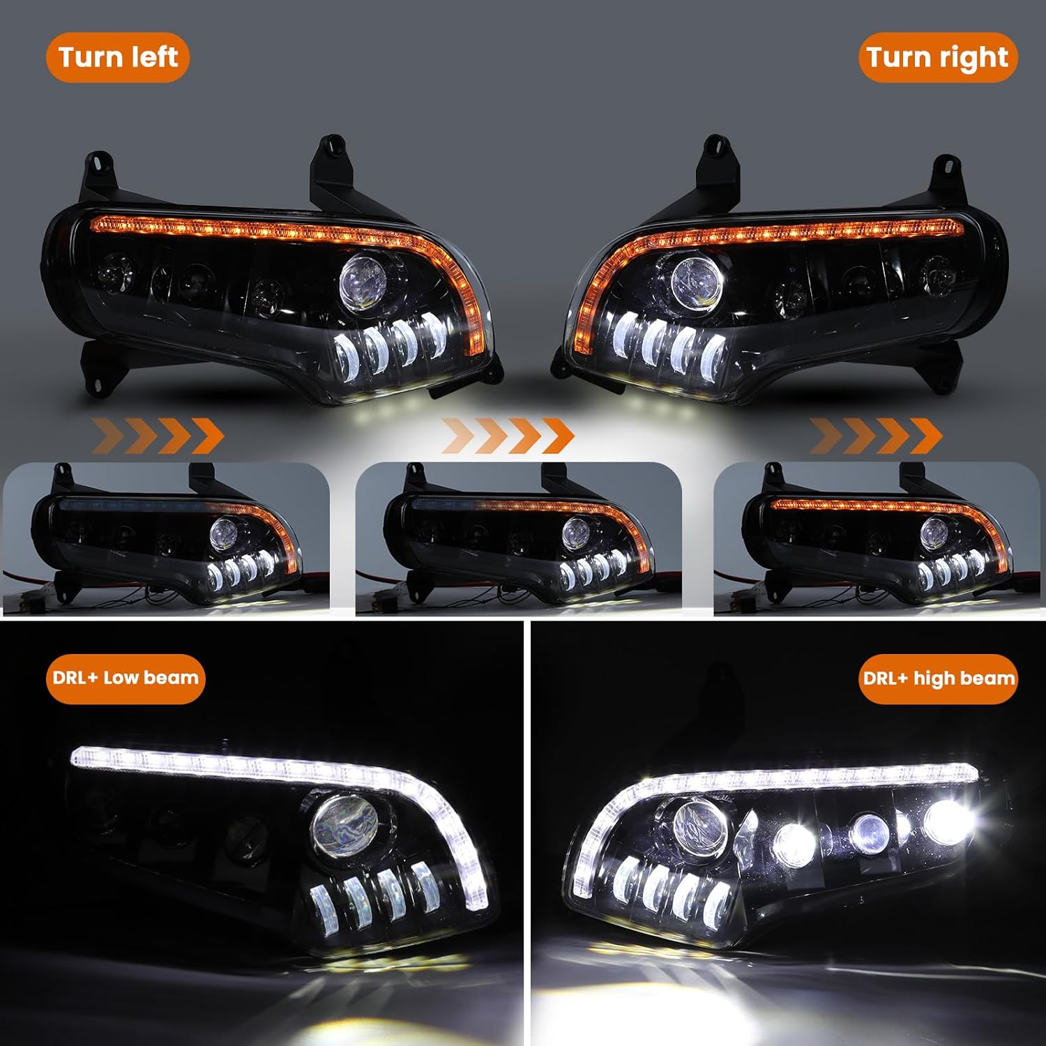 Multi-functional Built-in headlights: DRL flip sign+low beam+excessive beam,Meet all driving environments and adapt to varied lighting necessities.It may possibly instantly substitute the unique headlight, and it has stunning look and clear gentle, making driving safer and cooler