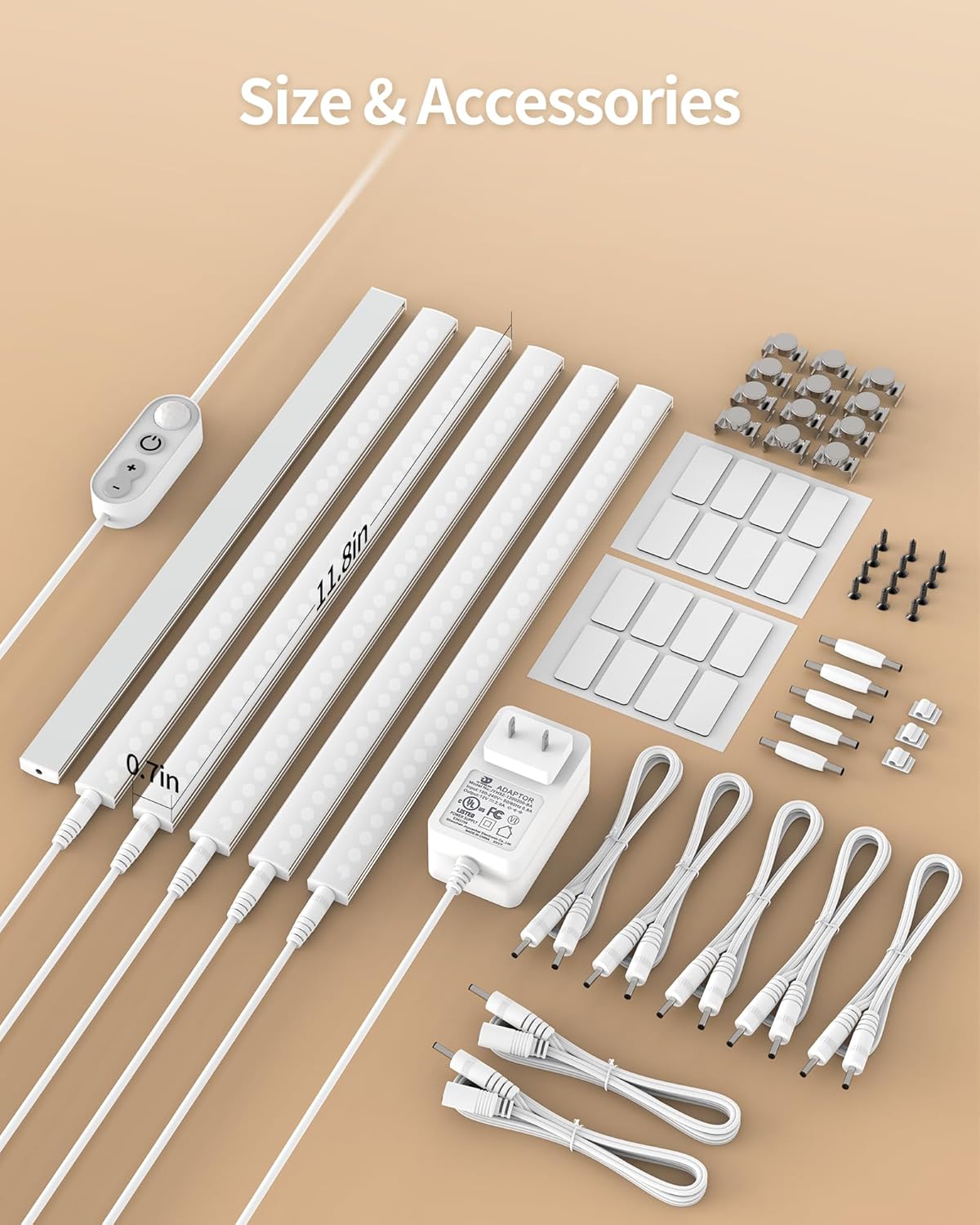 ASOKO Motion Sensor Dimmable Led Under Cabinet Lighting Plug in – 6 Pcs 12 inches Linkable Led Counter Light Bars, Led Closet Light Daylight White 4500K