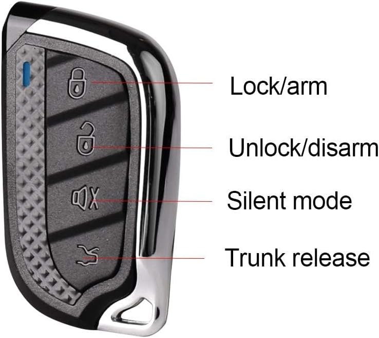 【Anti-hijacking】: When automotive shifting, press silent button as soon as, flash gentle will gleam rapidly, then press lock button two instances once more to enter into anti-hijacking standing, flash lights will gleam urgently, and siren will chirp, then the engine shall be reduce off after 40s. Solely press reset button can do away with anti-hijacking standing.