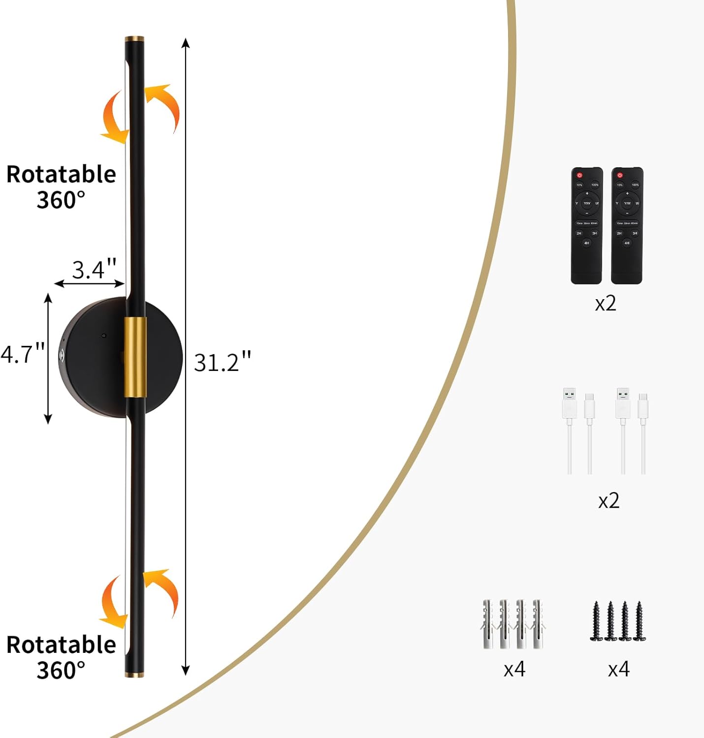 【Straightforward to Set up】You need not rent an electrician, as this battery powered wall sconce may be very straightforward to put in and does not require any wiring. You simply want to put in the mounting plate after which dangle the sconces