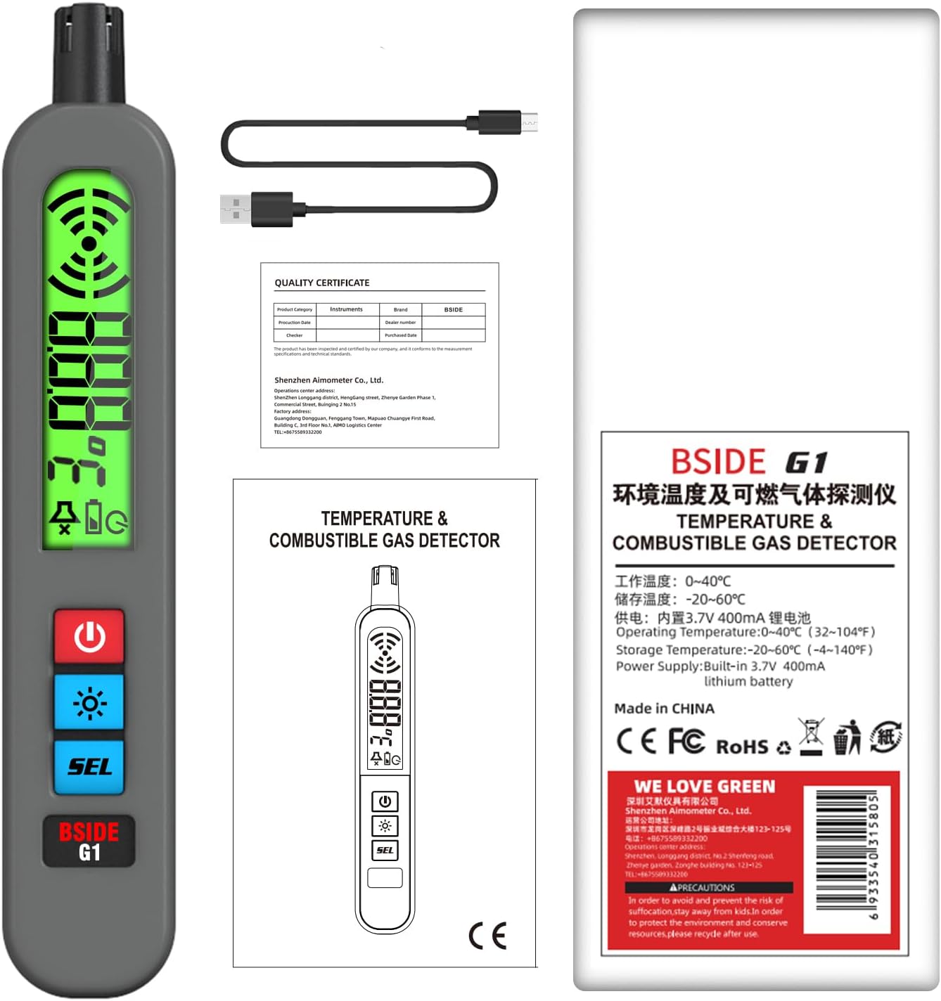 [Various of Combustible Gases Detection]: BSIDE G1 can precisely enable you find the fuel leakage of varied flamable gases in tight areas, equivalent to LPG, methane, ethane, propane, butane, pure fuel, coal fuel, fuel gas, liquefied pure fuel, and many others.