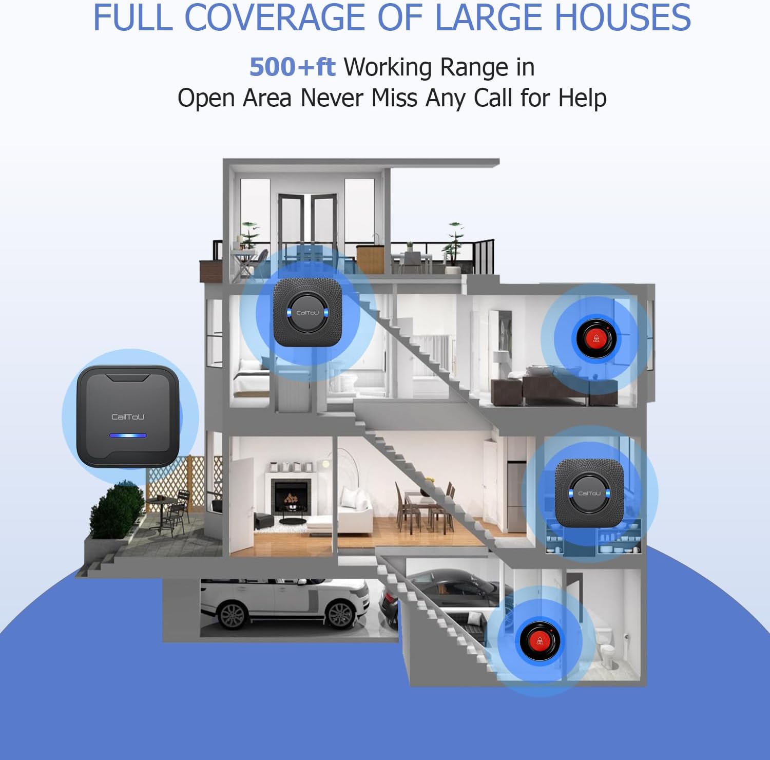 [True freedom! ] The transportable caregiver pager’s receiver may be moved with the caregiver, so there isn’t any want to fret about lacking a cherished one’s name for assist when working in a spot with out an outlet. With an open space working vary of over 500 ft, you possibly can take the pager for aged to bed room, kitchen, or yard for extra freedom at dwelling and on the go.