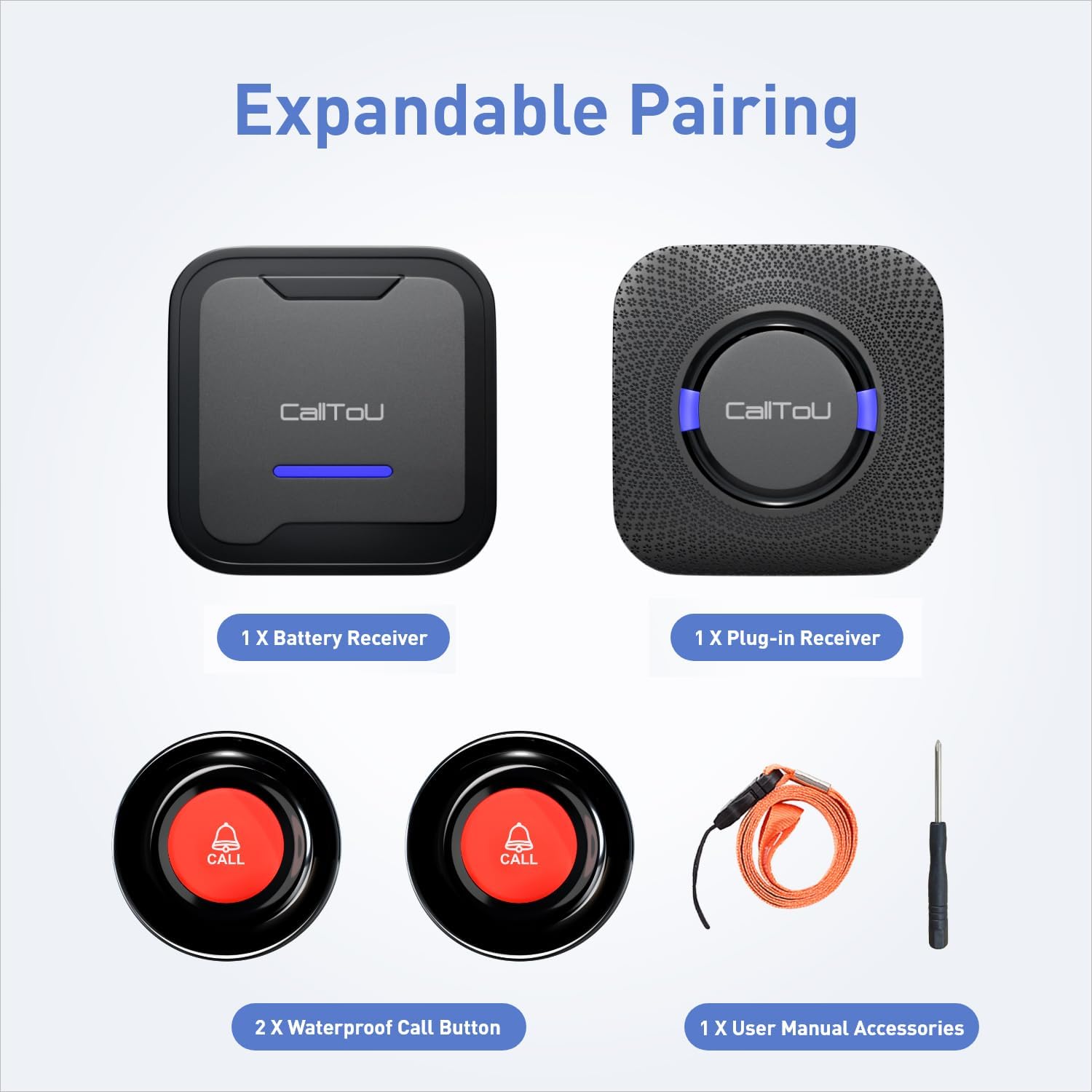 [ A Good Helper for Home Care ] 3 Receivers and three Name Buttons, the Thought is for Each Caregiver and Affected person, Aged, Resident, Handicapped, Sick Freedom whereas Nonetheless calling for assist at dwelling. Not must Yell to Get Somebody’s Consideration. CallTou wi-fi name bell system may be shortly and simply used and put in.