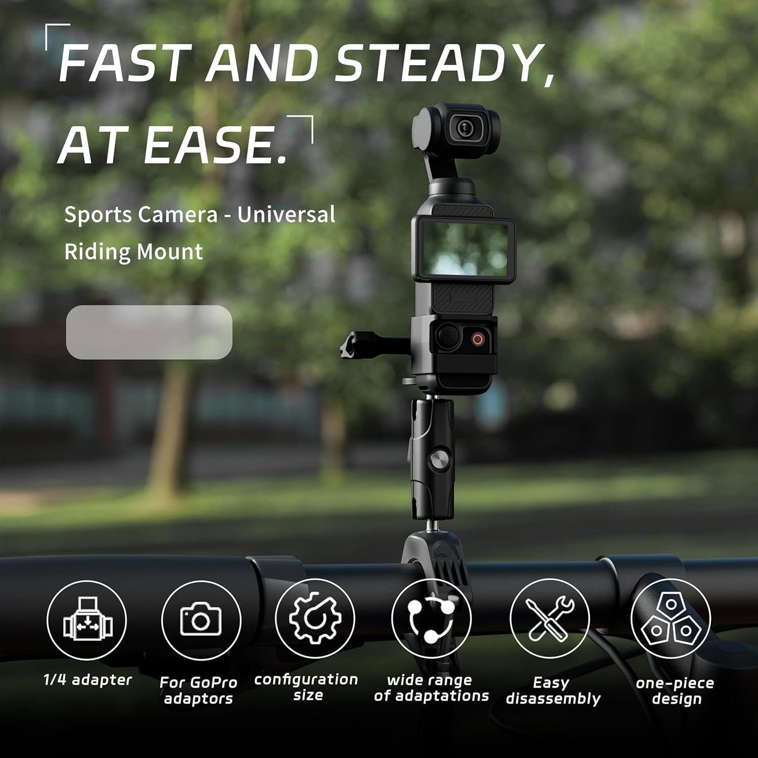 Camera Riding Mount,Bike/Motorcycle Handlebar Clamp Mount Compatible for GoPro Hero/for DJI Action Cameras – 360 Degree Rotation