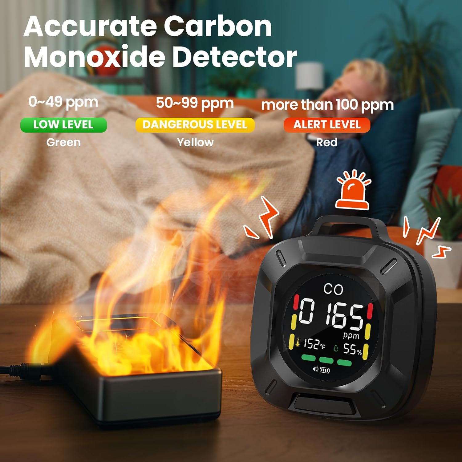 【3-in-1 Multifunctional CO detector】ALIESTFDNO transportable carbon monoxide detectors can able to detecting CO ranges, temperature and humidity. Which may decide the encompassing CO worth and general air high quality shortly, real-time figuring out the surroundings is protected or not. CO ranges, temperature and humidity information is displayed on a colourful HD display clearly.
