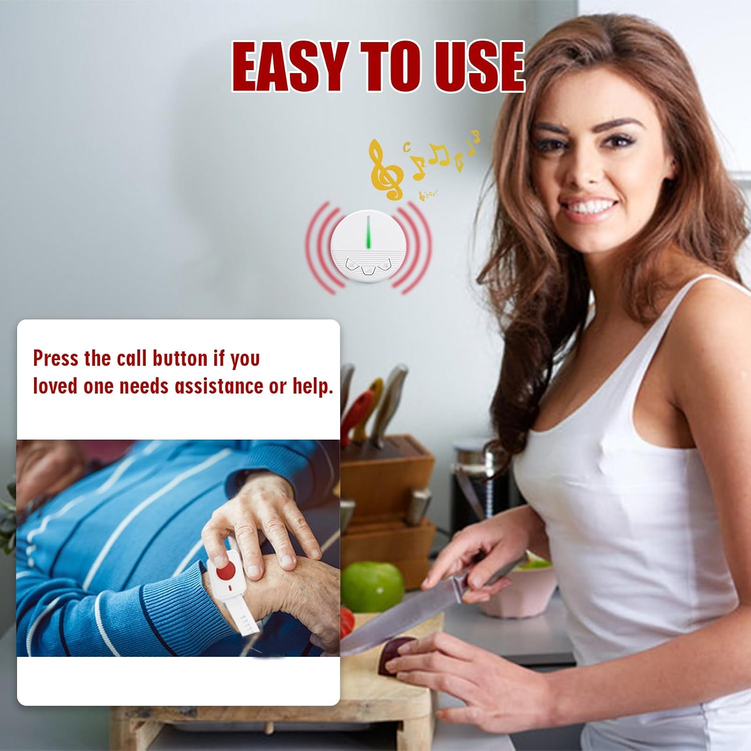 Caregiver Call Button Life Alert Nurse Call System Alert Button for Seniors Elderly Monitoring at Home 1 Plugin Receiver 1 Watch Button