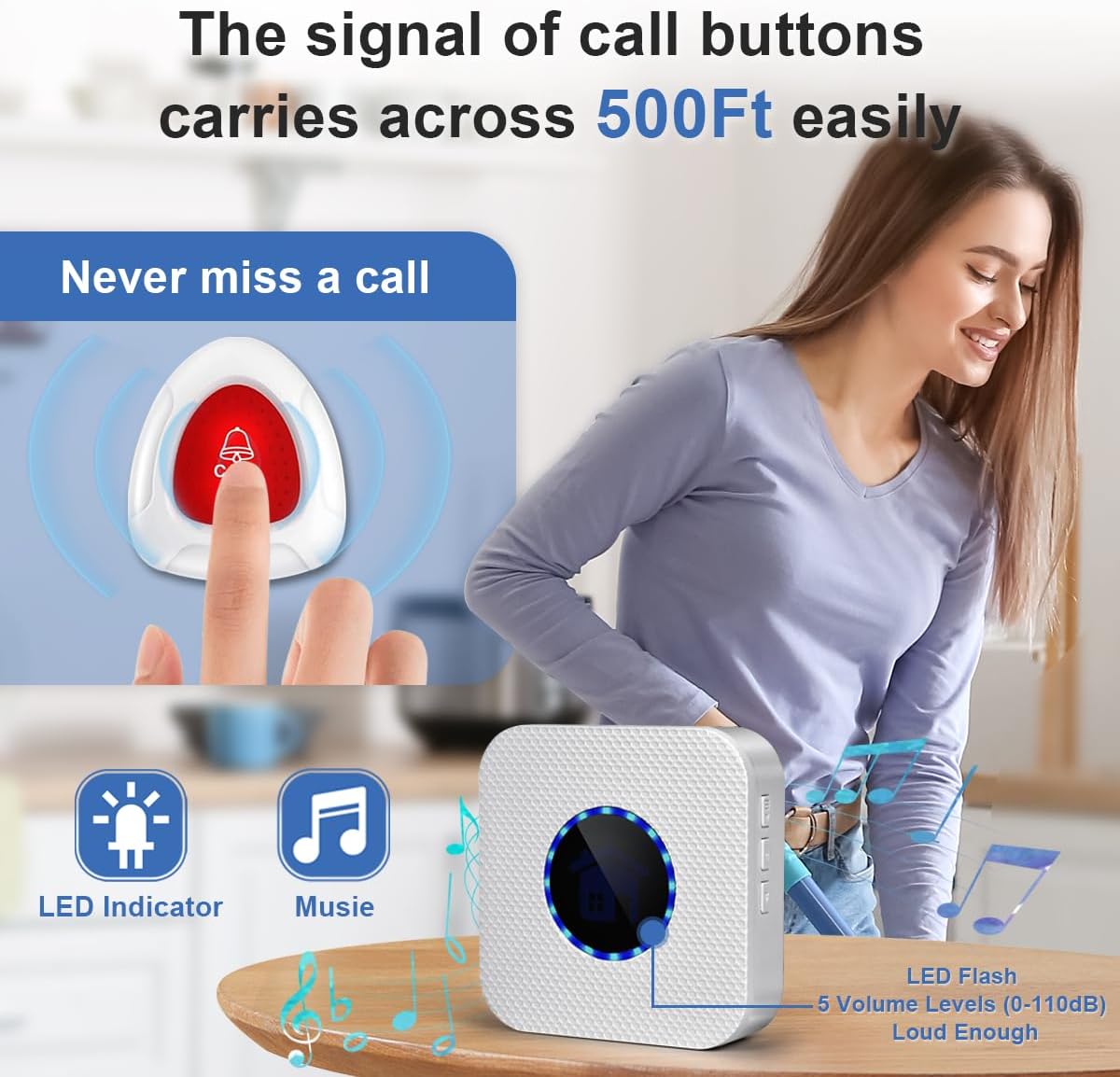 【Dependable Efficiency】The receiver will be moved with the caregiver and the open space working vary is 500+ ft, you’ll be able to take it to the bed room, kitchen or yard, so there is no such thing as a want to fret about lacking a liked one’s name for assist when working in a spot with out an outlet.The decision button may also be hung across the neck of the particular person with a neck strap who wants assist like a pendant or secured with a bracket or double sticker.