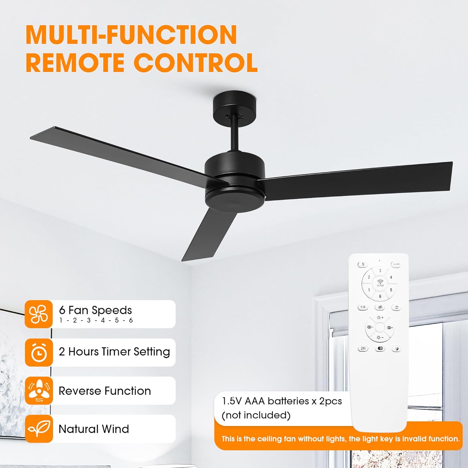 DESIGN: This 52 inch black ceiling fan no lights is an ideal mix of fashion and performance. With its three aerodynamically designed fan blades, it provides optimum air circulation. The fan’s reversible function permits for each cooling and warming results, making it an all-season equipment.