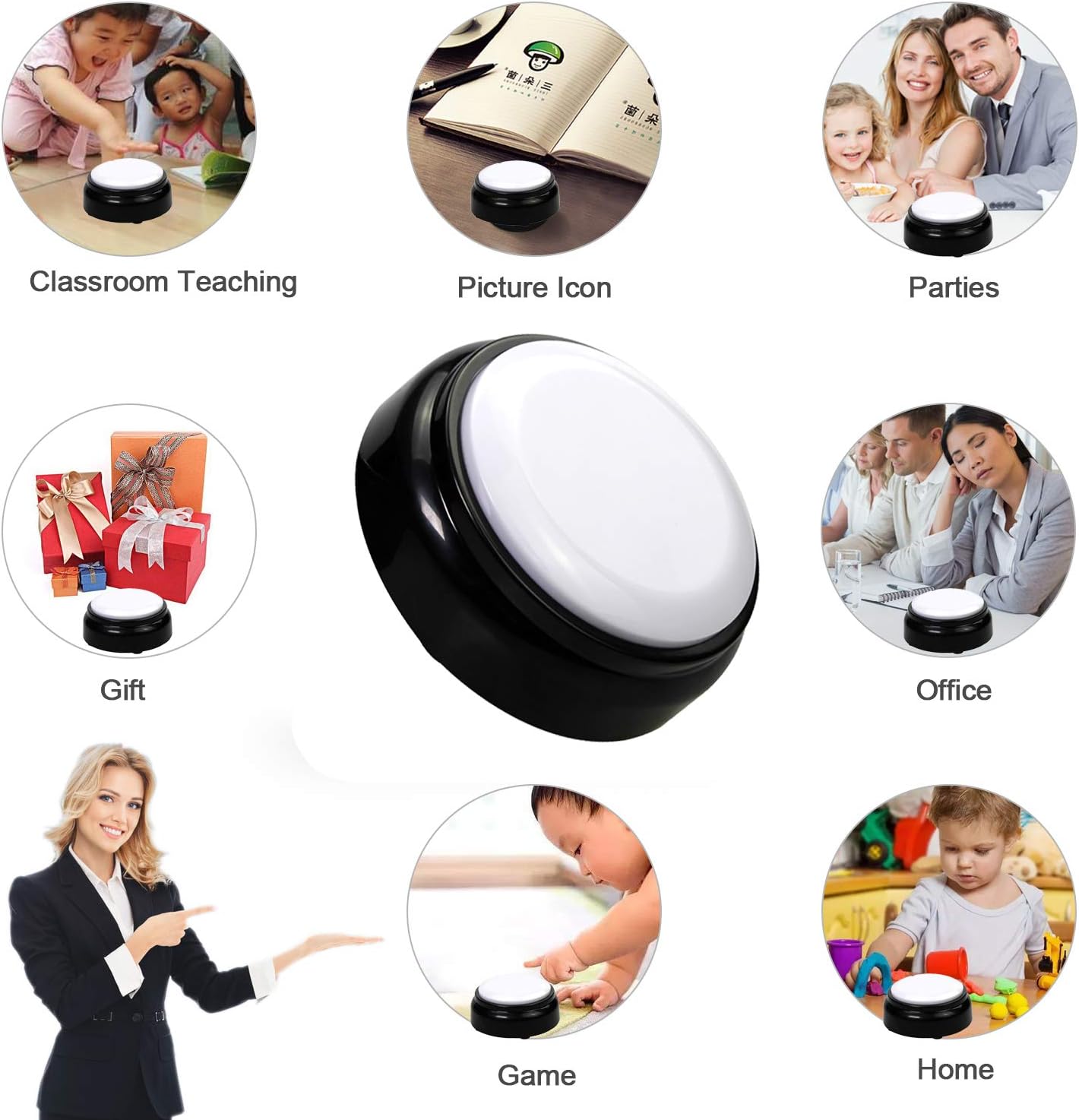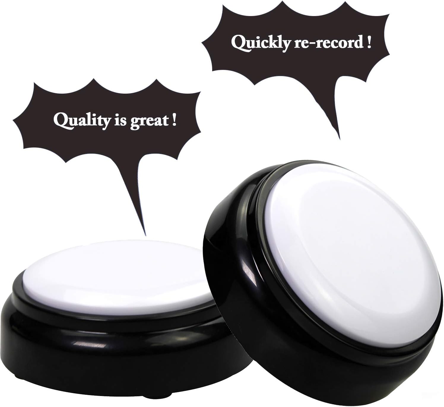Cover 30 Seconds Recordable Talking Button Record Button Toy Gift Answer Buzzers (White+Black)
