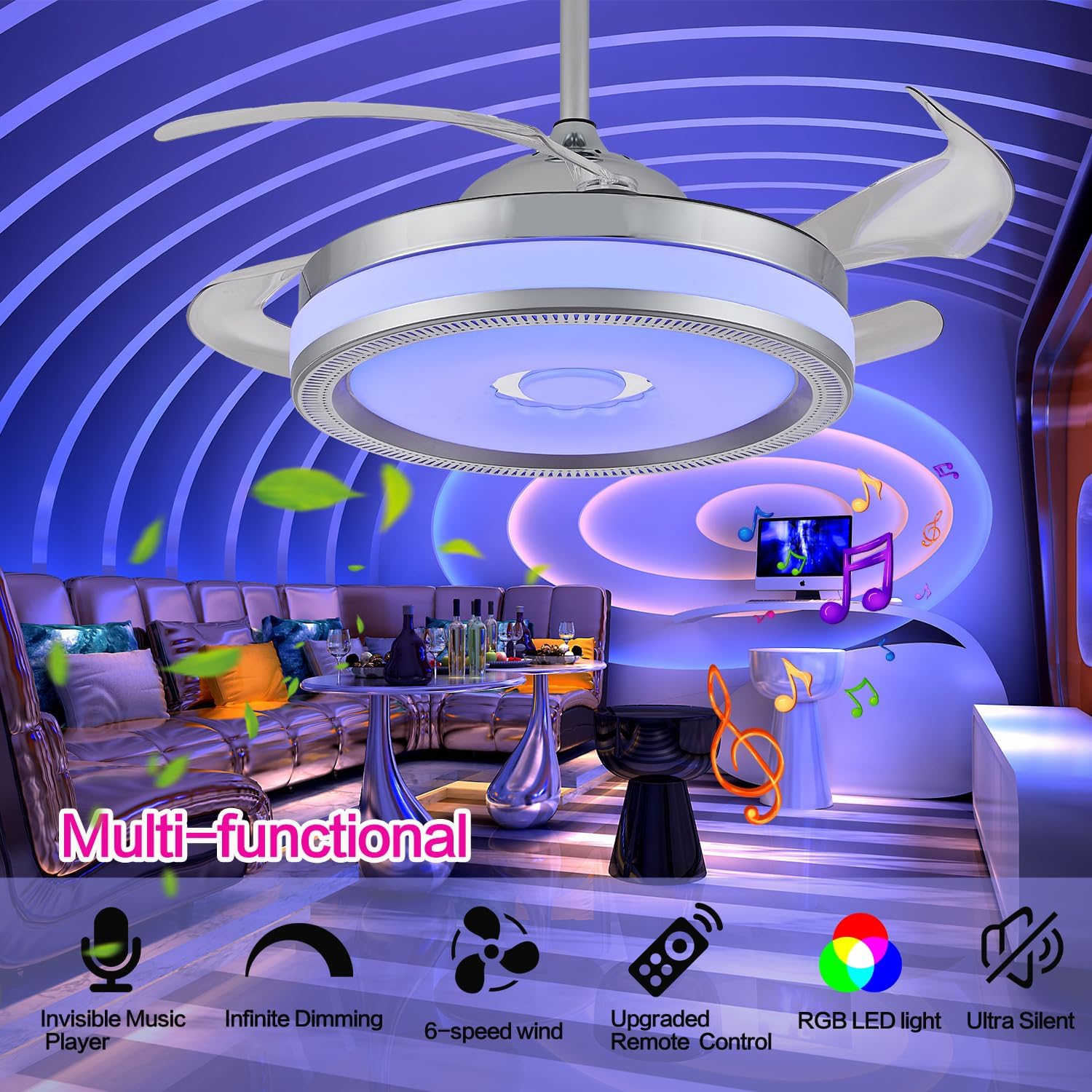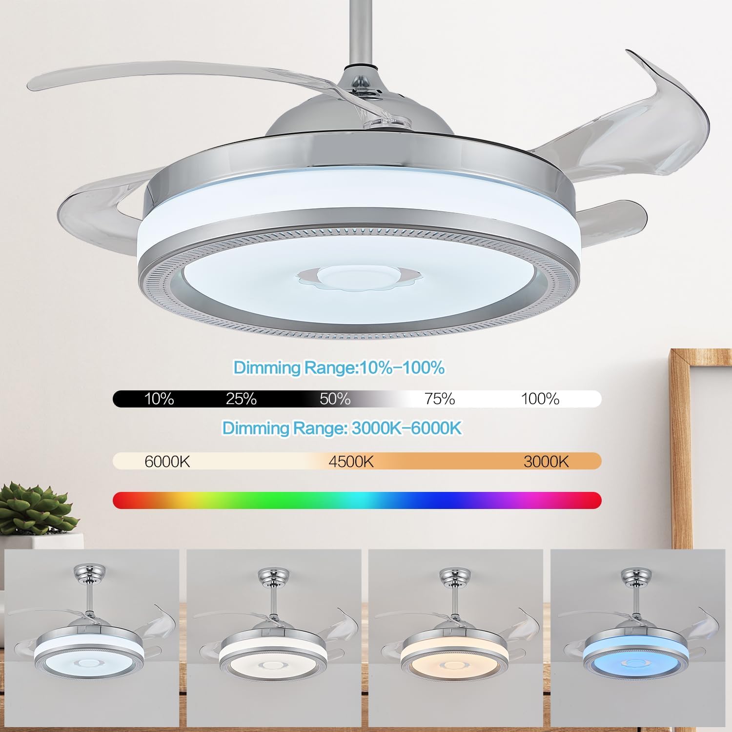 ♫【Bluetooth Ceiling Fan】Retractable bluetooth ceiling fan mild built-in Bluetooth speaker, benefit from the shock of 3D stereo encompass sound high quality! Play music or evening story by Bluetooth Speaker. RGB Colour and Absolutely Dimmable.