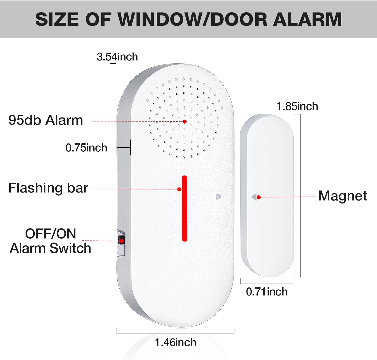 【Extraordinarily Loud 95 dB Alarm】 If anybody unlawfully opens a window or door (pertaining to the interchanging major and secondary parts), the alarm can emit a loud warning, urging the intruder to exit and reminding the proprietor and a pink alarm gentle. It additionally serves to stop youngsters or infants from wandering exterior, securing your residence or office no matter your absence.