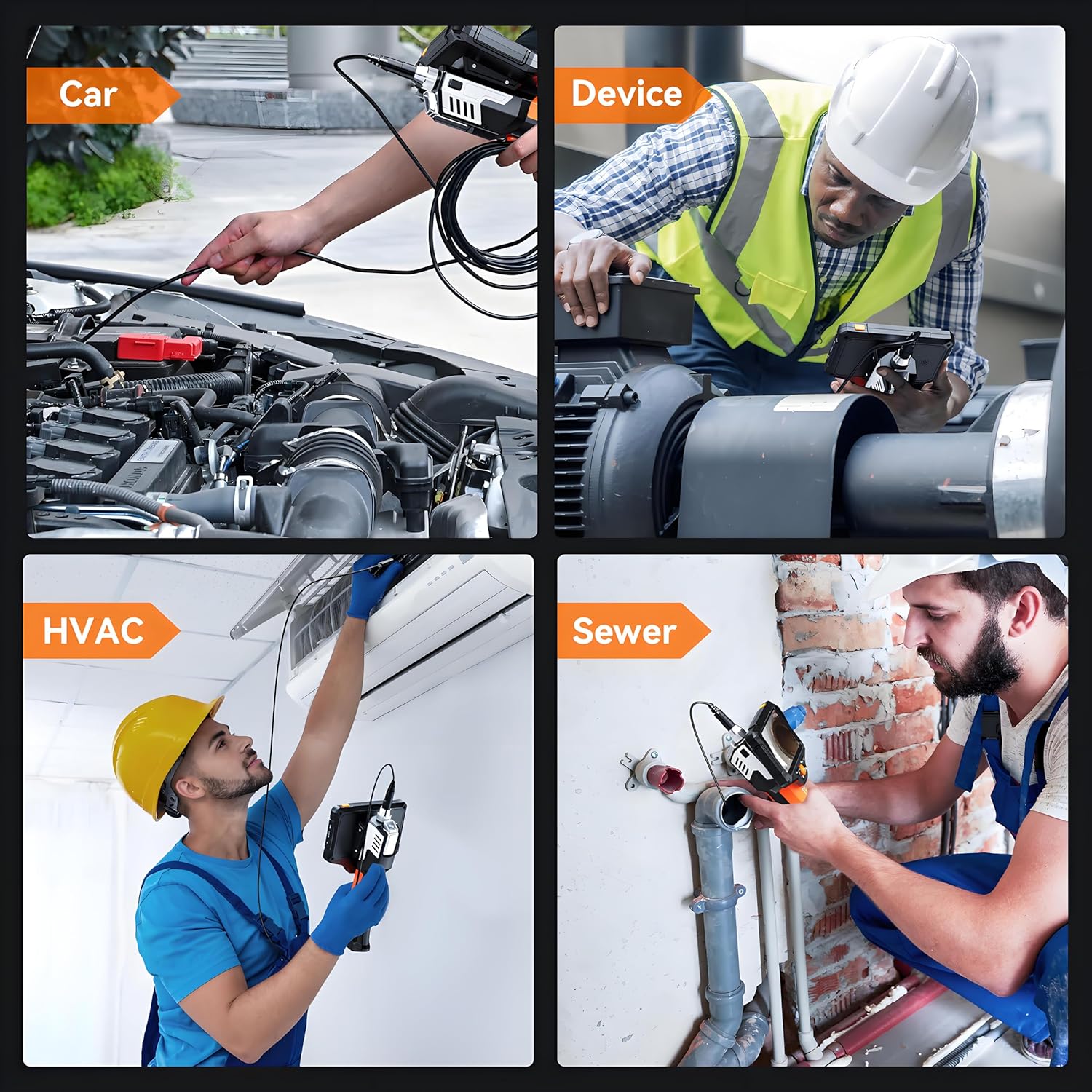 【Adjustable Endoscope Digital camera With Mild】:This inspection digital camera makes use of a 180 ° rotation of the digital camera path for higher statement., It has three adjustable brightness ranges, guaranteeing clear photographs even in darkish circumstances. The focal size of the entrance digital camera is 3-10cm/1-4 inches, and the facet digital camera is 2-6cm/0.8-2.4 inches. A 16.5FT semi-rigid cable could be bent and maintained in its form to enter numerous slim areas and meet completely different utilization wants.