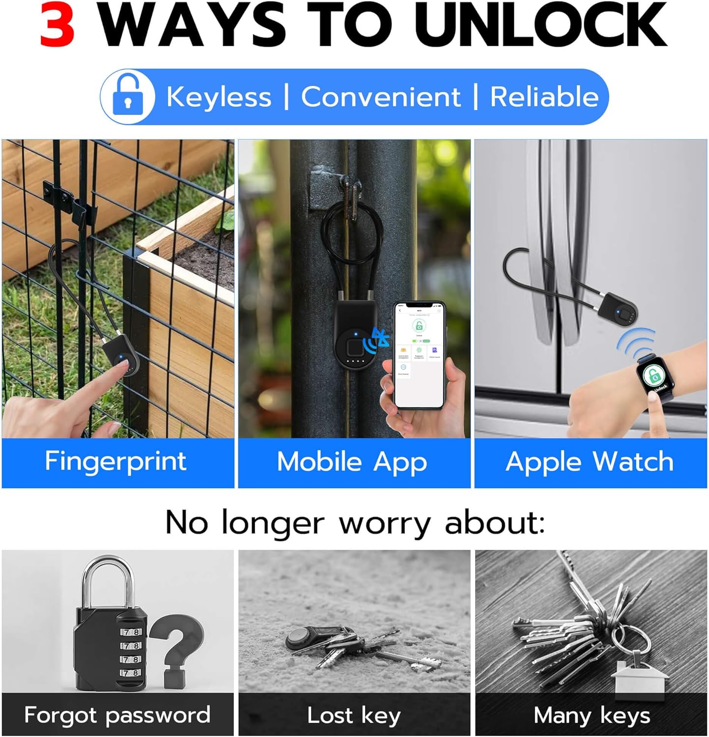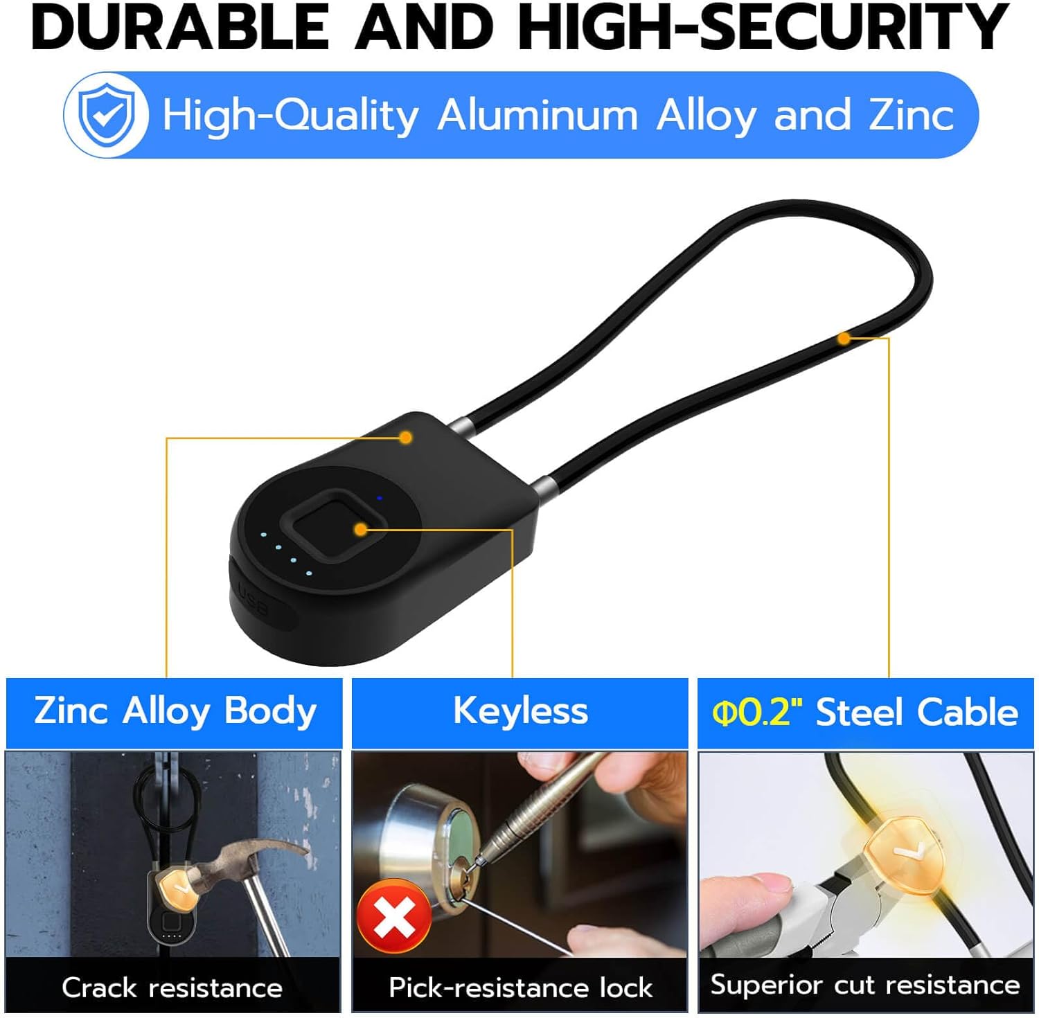 🔒【FINGERPRINT UNLOCK】: Fingerprint padlock makes use of superior biometric know-how, contact your finger to fingerprint unlock inside 0.2 seconds, the unlocking velocity is way quicker than strange rope locks and key locks. Your finger is the important thing, now not fear about shedding the important thing or forgetting the password.