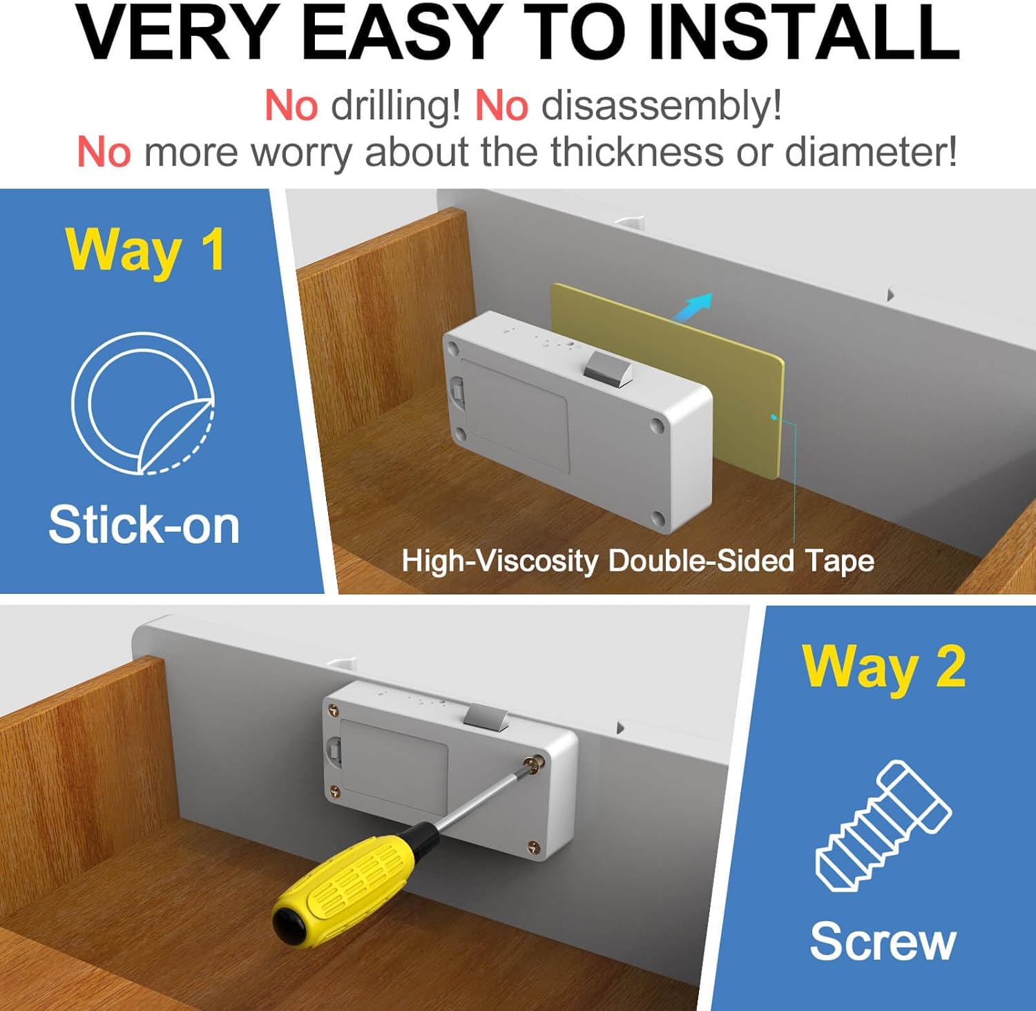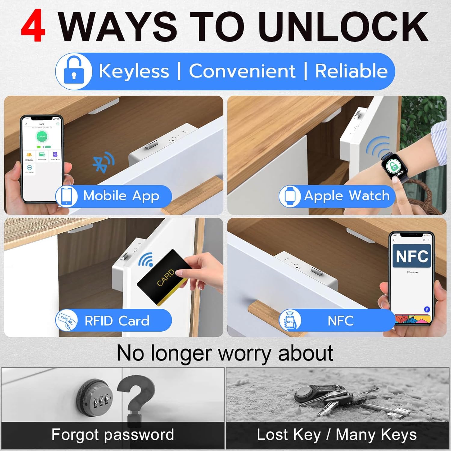 🔒【4 UNLOCKING WAYS】: The sensible cupboard lock will be unlocked by way of the Cell App, Apple Watch, RFID Card, and NFC. It makes unlocking extra handy and quick, with out worrying about forgetting the passcode or dropping keys.