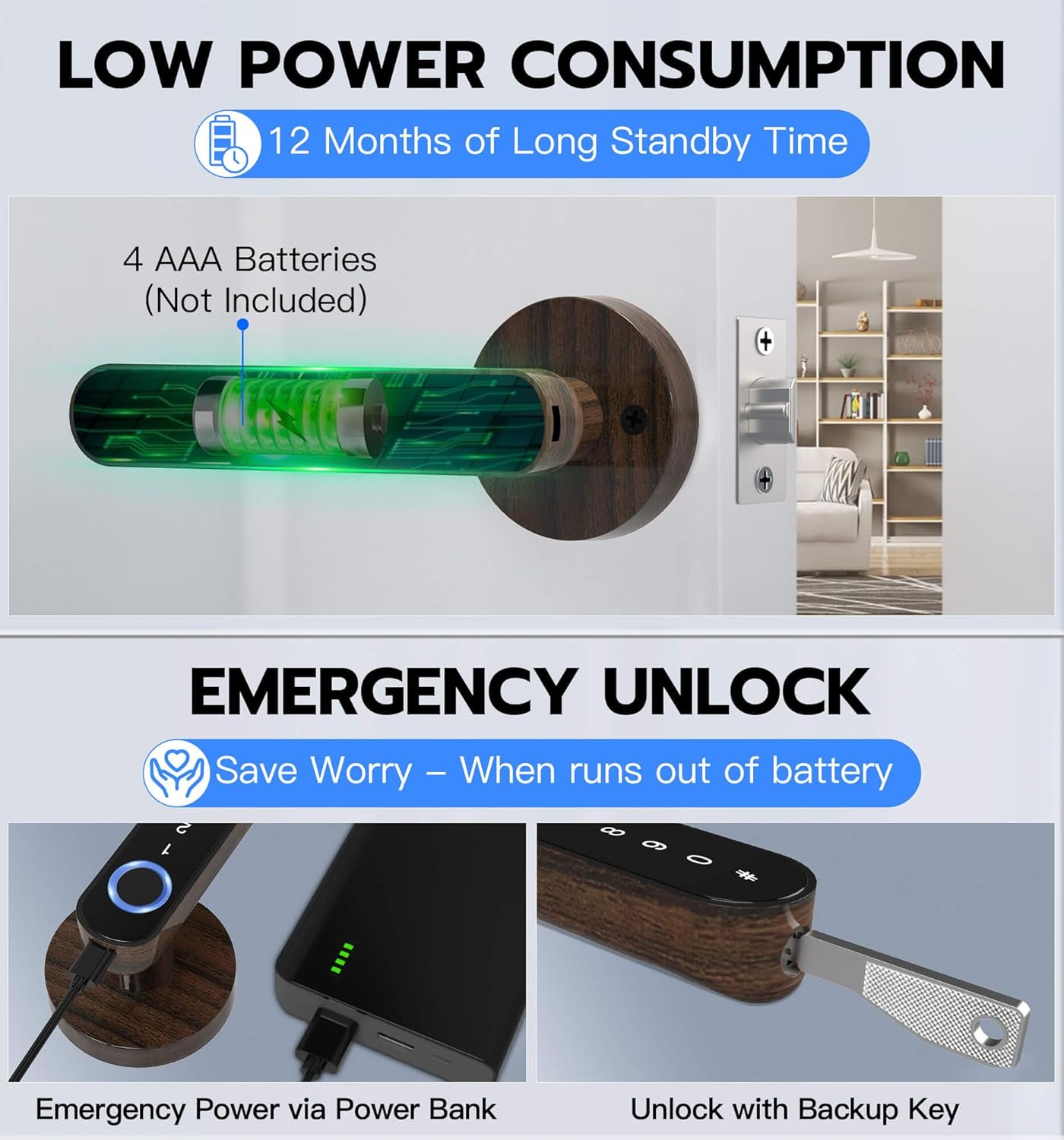 🔐【LONG BATTERY LIFE】: The digital door lock is low energy consumption guaranteeing lengthy battery life, need not change the battery in 1 yr. And it’ll remind you when the battery is low. Even when it runs out of battery, you need to use an influence financial institution for emergency energy.
