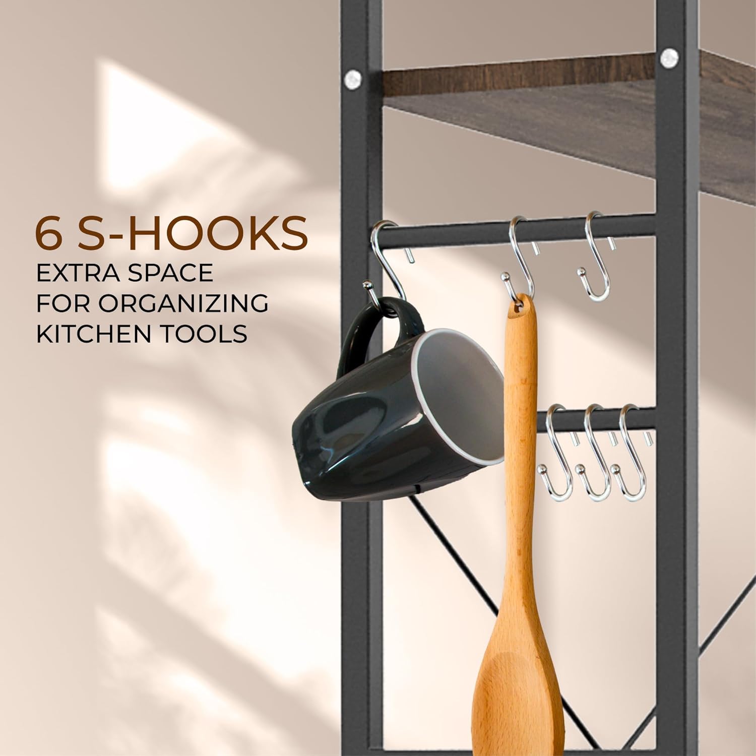 Set up all of it! This espresso cart station with 6 S hooks gives spacious storage, good for smaller kitchens. Fashionable rack design supplies numerous house to retailer and manage your kitchen necessities, from cookware to devices, preserving every thing inside simple attain. Use it as a kitchen stand to streamline your cooking space, or as a kitchen storage organizer to declutter your counter tops. Improve your house effectivity and elegance with this multifunctional piece