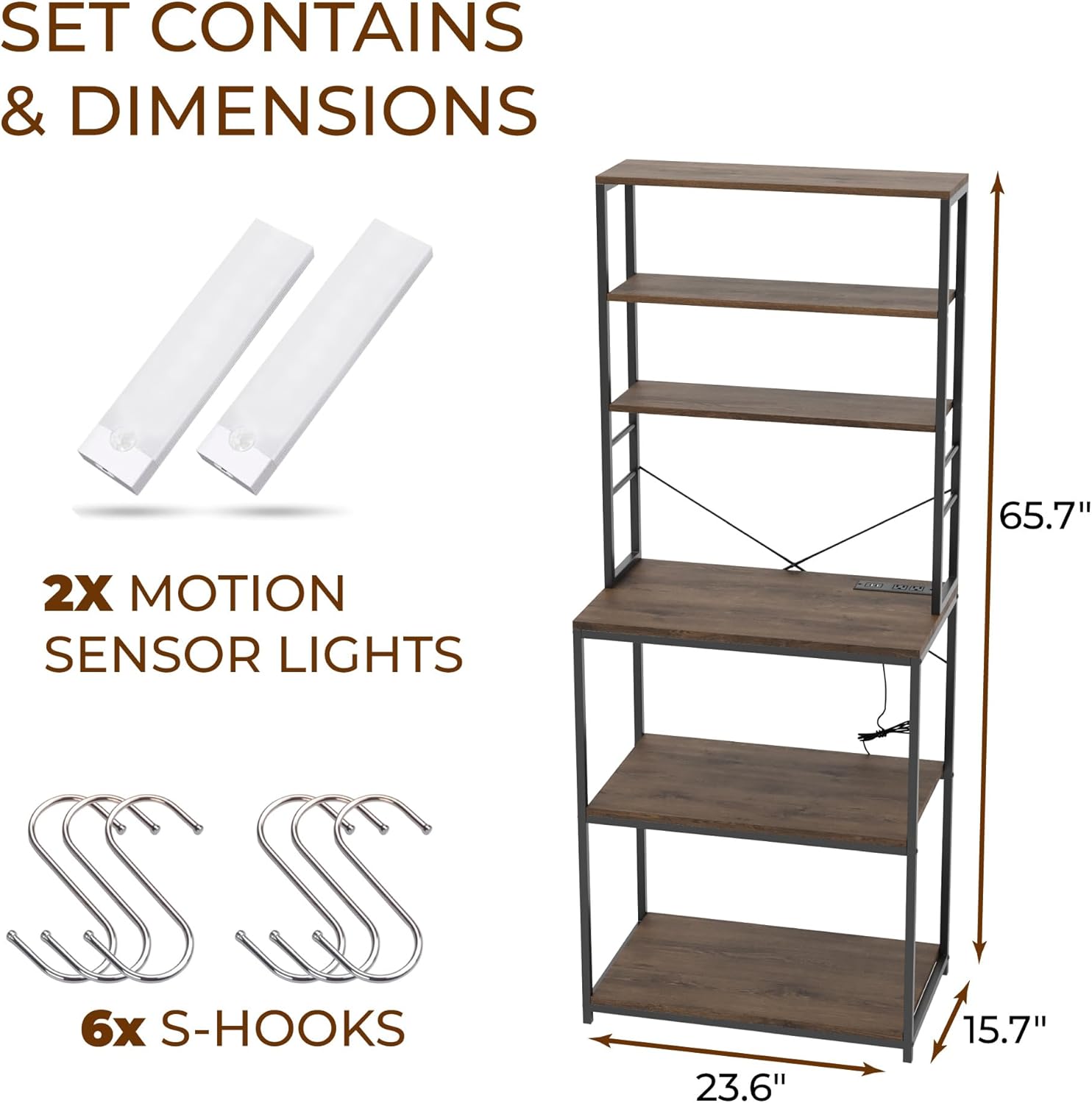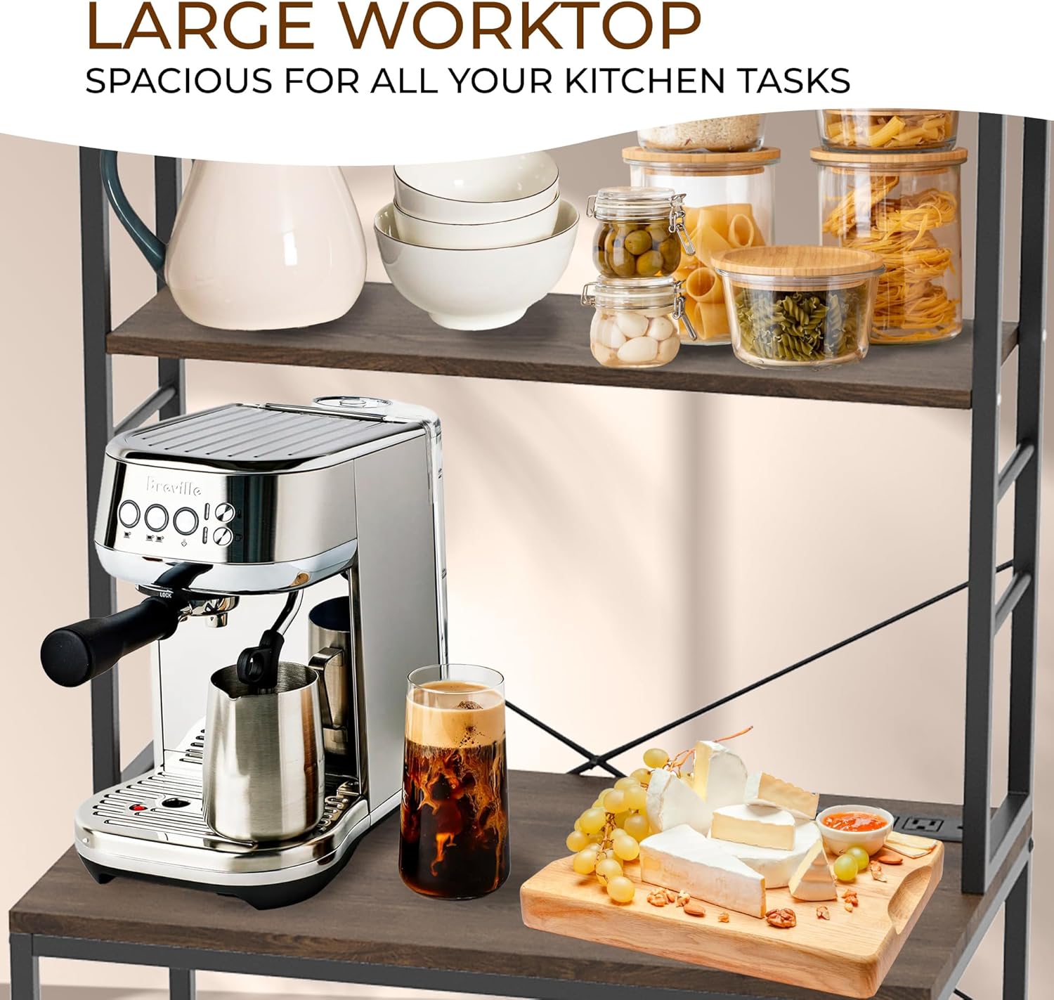 Rework your kitchen into extremely useful house with our versatile bakers rack with storage, designed for each fashion and group. This espresso station comes geared up with a built-in energy outlet together with USB ports, making it good on your small home equipment. With comfort in thoughts we added movement sensor lights to offer environment friendly illumination. Ideally suited as a kitchen storage rack, it gives ample house to arrange and declutter your kitchen effectively