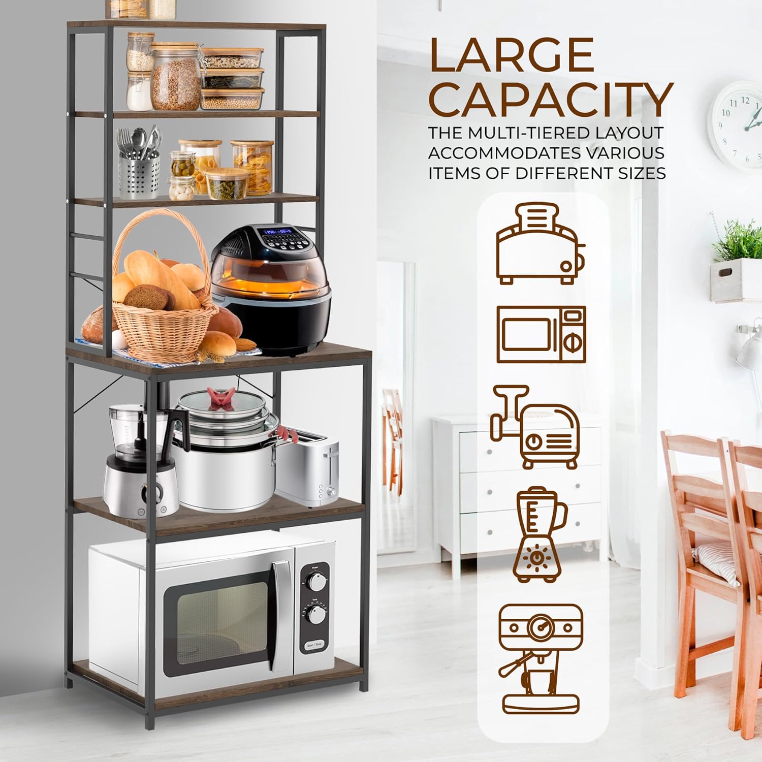 Our kitchen bakers rack gives a sturdy and sturdy development, good for all of your kitchen equipment storage wants. Constructed to resist day by day use, this rack supplies a steady and dependable resolution for organizing your kitchen. Designed for accessible kitchen storage with considerate structure, the place you may simply attain your kitchen home equipment and necessities, making your day by day cooking duties less complicated and extra environment friendly
