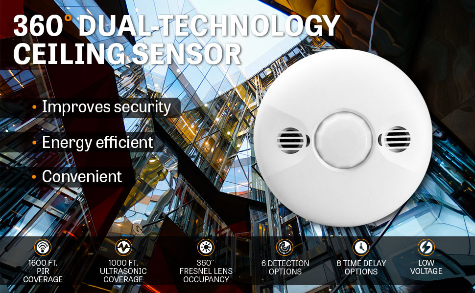 Combines passive infrared and ultrasonic know-how offering probably the most correct movement ceiling sensor potential. The ultrasonic sensor can defect high-quality actions similar to typing, and flipping e book pages
