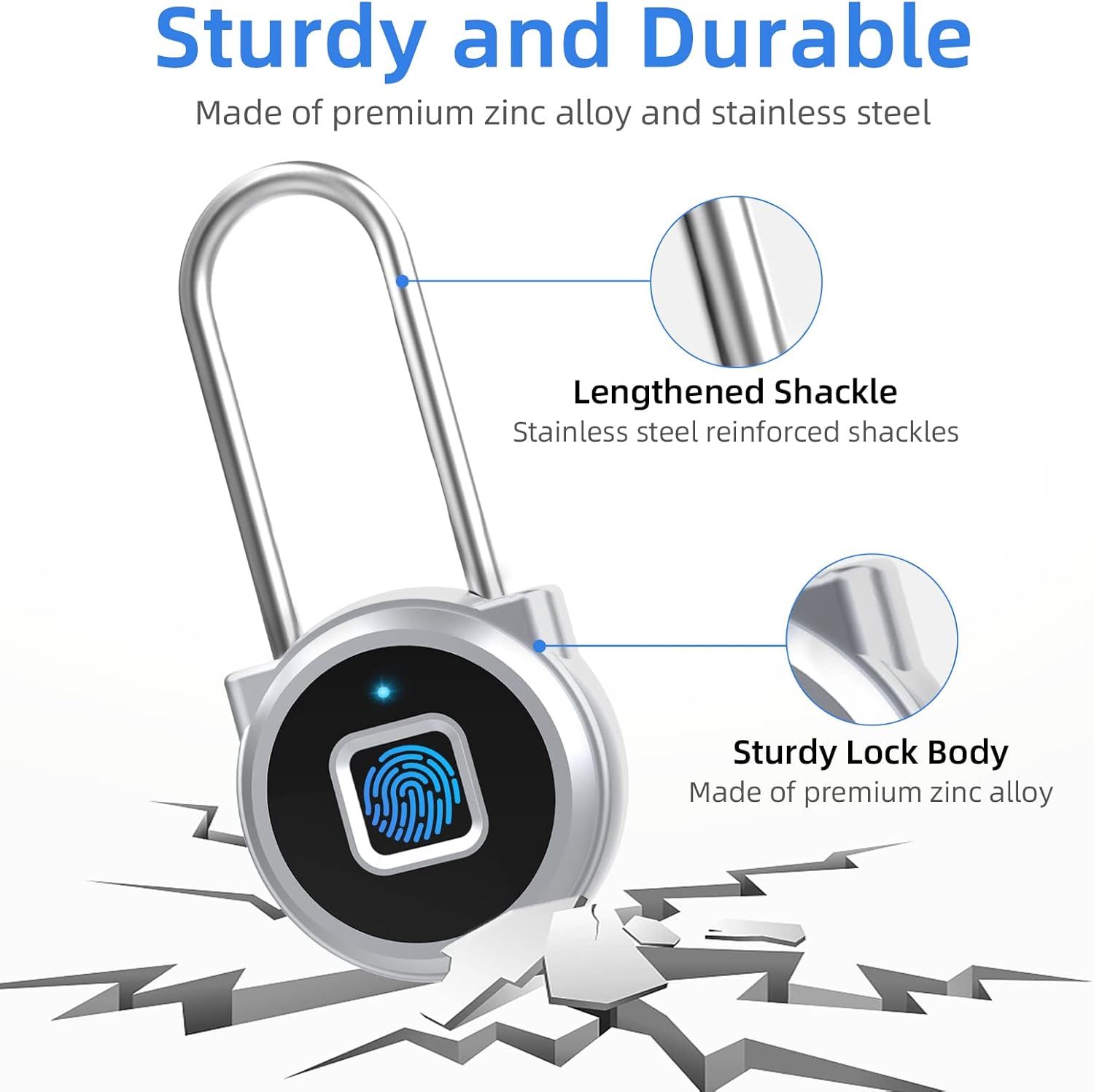 【Lengthy Run Time】 The sensible padlock has low energy consumption and a protracted standby time. A 110MAH rechargeable lithium battery can help greater than 6-month of standby time and might be unlocked greater than 2000 instances. Use the USB cable or energy financial institution to cost the lock.