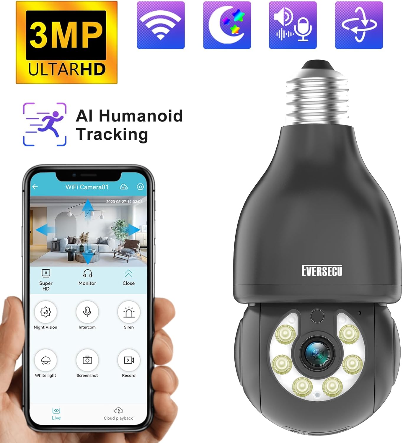 This safety digicam, appropriate with each 2.4Ghz and 5Ghz Wifi, is straightforward to put in in E26 / E27 gentle sockets. Simply screw it into a lightweight socket (110V~240V), no drilling, wiring, or energy cables required. Use the free app for setup. Ideally suited for each indoor and outside use.