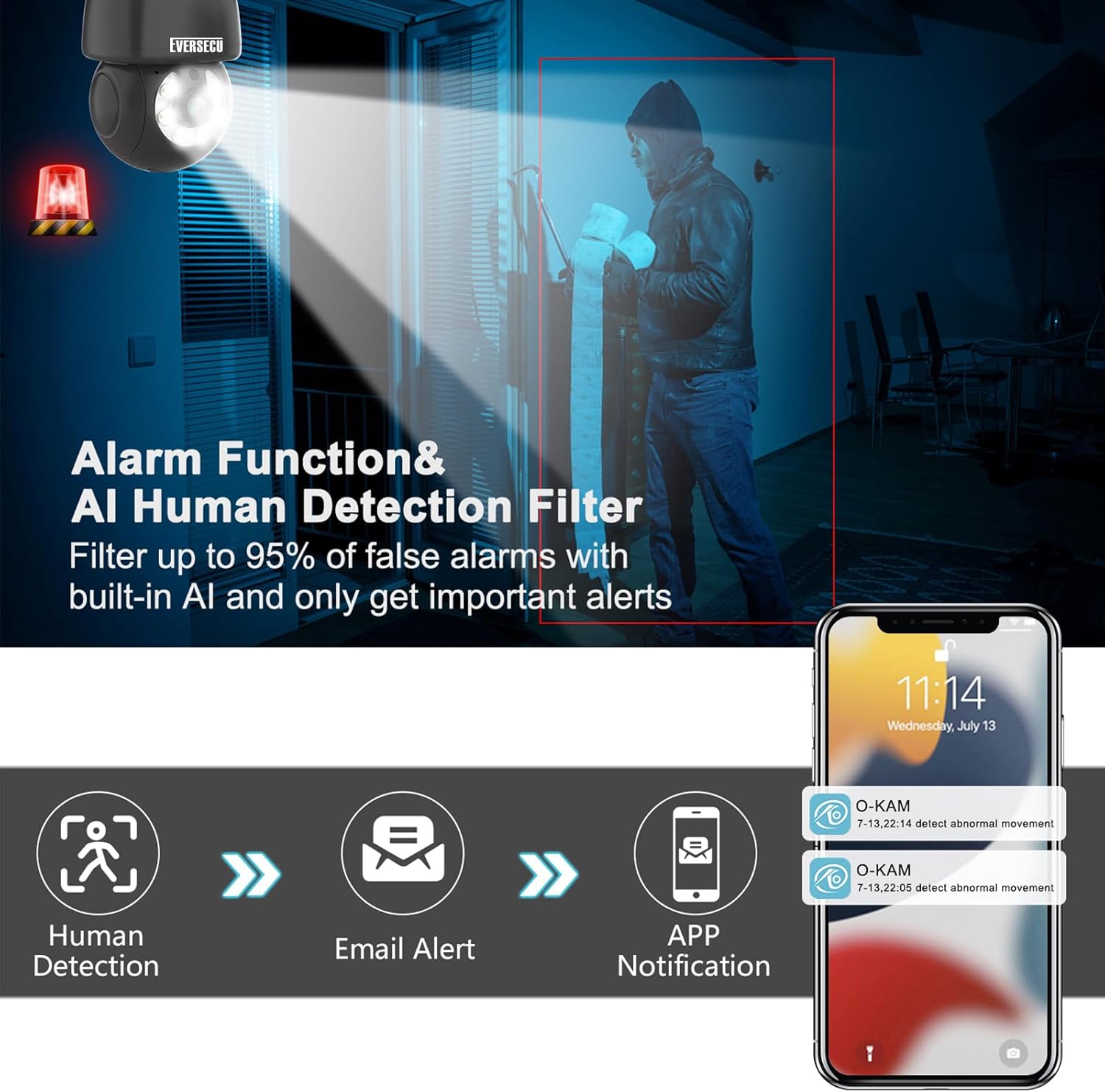[2K 3MP Ultra HD Video Resolution] : This surveillance digicam produces 2K Extremely HD Video Decision, it’s built-in 6pcs IR LEDs+6pcs white LEDs with 31ft w/b and 65.6ft FULL-COLOR evening imaginative and prescient, offering you with an excellent clear viewing expertise. All captured by this digicam shall be introduced to you through fluent and beautiful movies. With 355˚ pan, 110˚ tilt, 4x digital zoom, you’ll be able to remotely management the pan-tilt-zoom function through the App anytime wherever.