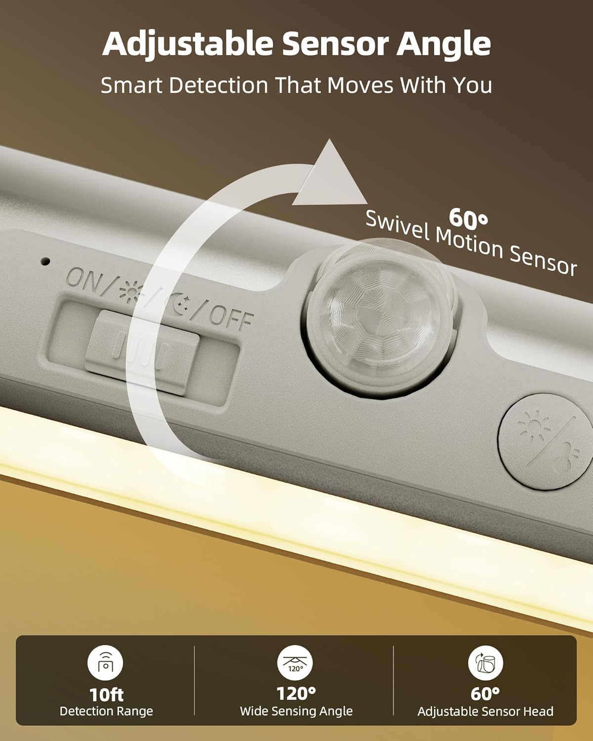Upgraded Movement Sensor: Our closet mild options an adjustable swivel sensor head that allows you to intention the detection zone towards closets or hallways for exact activation. No extra false triggers or undesirable activations. It gives 3 modes with a 120°detection angle and a 10ft vary—On (steady lighting), Day (motion-activated), and Evening (darkness detection), with auto-off after 20s to avoid wasting vitality.