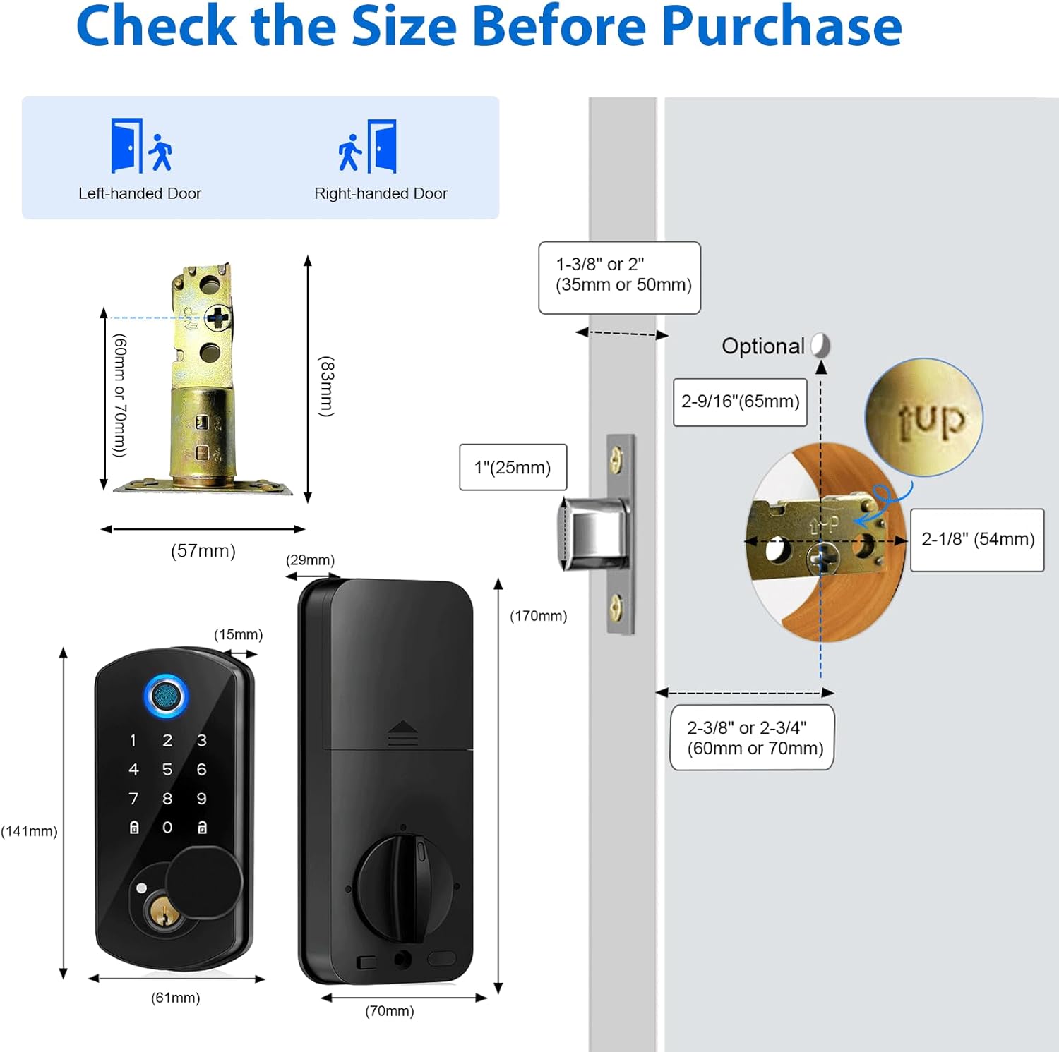【Examine The Lock’s Spindle Earlier than Set up】This good door lock is appropriate for doorways with a thickness from 35m to 50mm. The unique size of the lock’s spindle is 50mm, and there are 25mm adjustable size on the lock’s spindle, and each 5mm with a groove. If the thickness of your door is lower than 50mm, you should use pliers at residence to chop the lock’s spindle based on the place of the groove to an acceptable size.