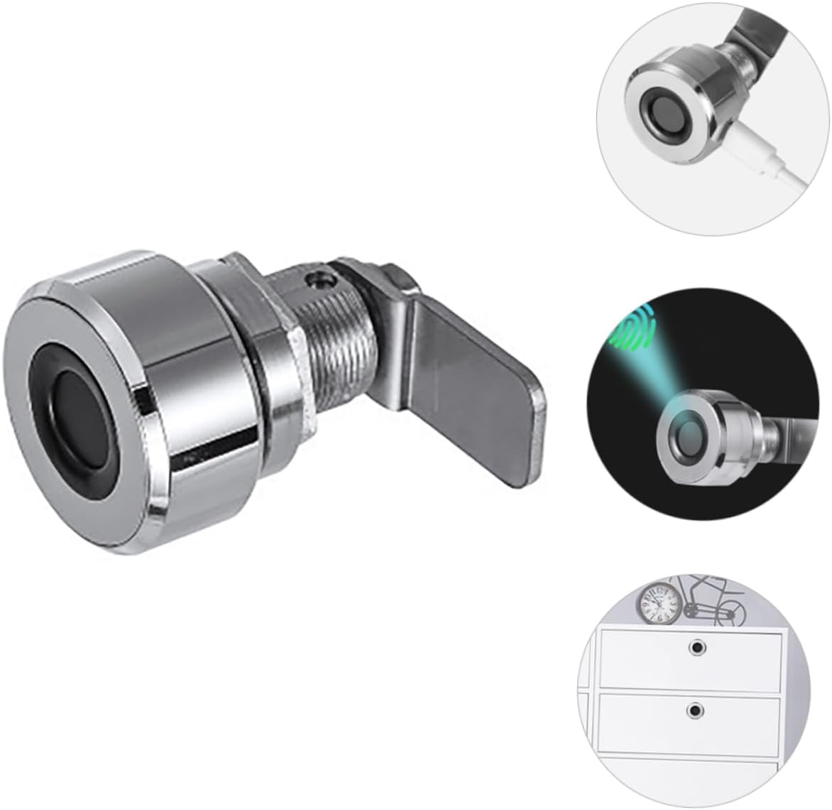 Gadpiparty 1Pc USB Charging Biometric Fingerprint Drawer Lock Material Easy Installation Durable Lock Replacement for Cabinets Safes and Furniture