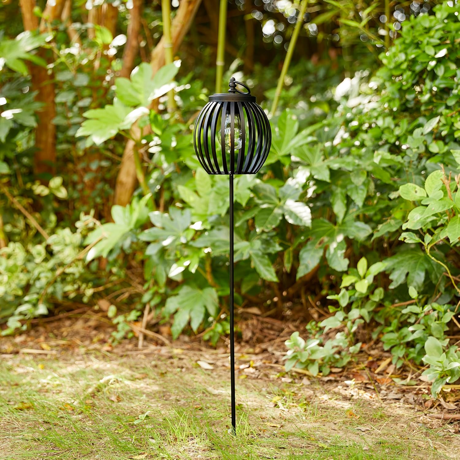 Glitzhome Solar Lights Outdoor Round-Shaped Black Metal Stripes Solar Stake Lights with Edison Bulb