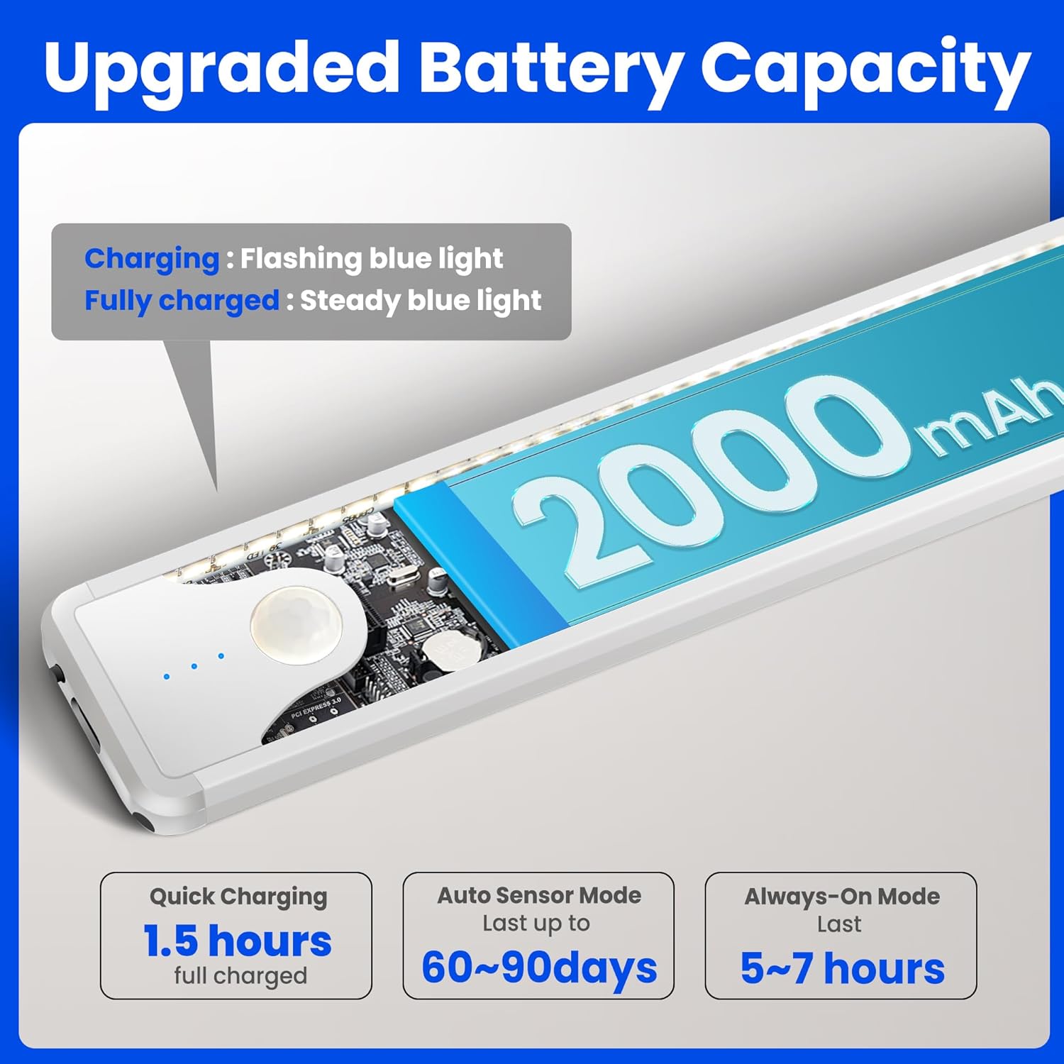 【Lengthy Utilization Time】Geared up with a 2000mAh fast-charging battery, our LED below counter mild can last as long as 7 hours on the brightest mode. In motion-sensing mode, it may be used for as much as 3 months, relying on the brightness setting. Charging takes solely about 1.5 hours, making certain fast and environment friendly recharging