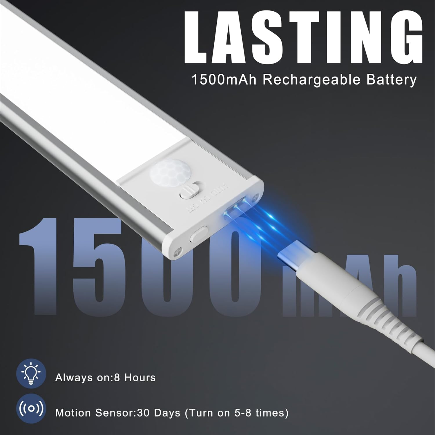 hyrion Under Cabinet Lighting,3 Temps Dimmable LED Rechargeable Battery Operated Motion Sensor Detection Light Indoor, 4 Pack Magnetic Closet,Portable Wireless Under Counter Light for Kitchen,Stairs