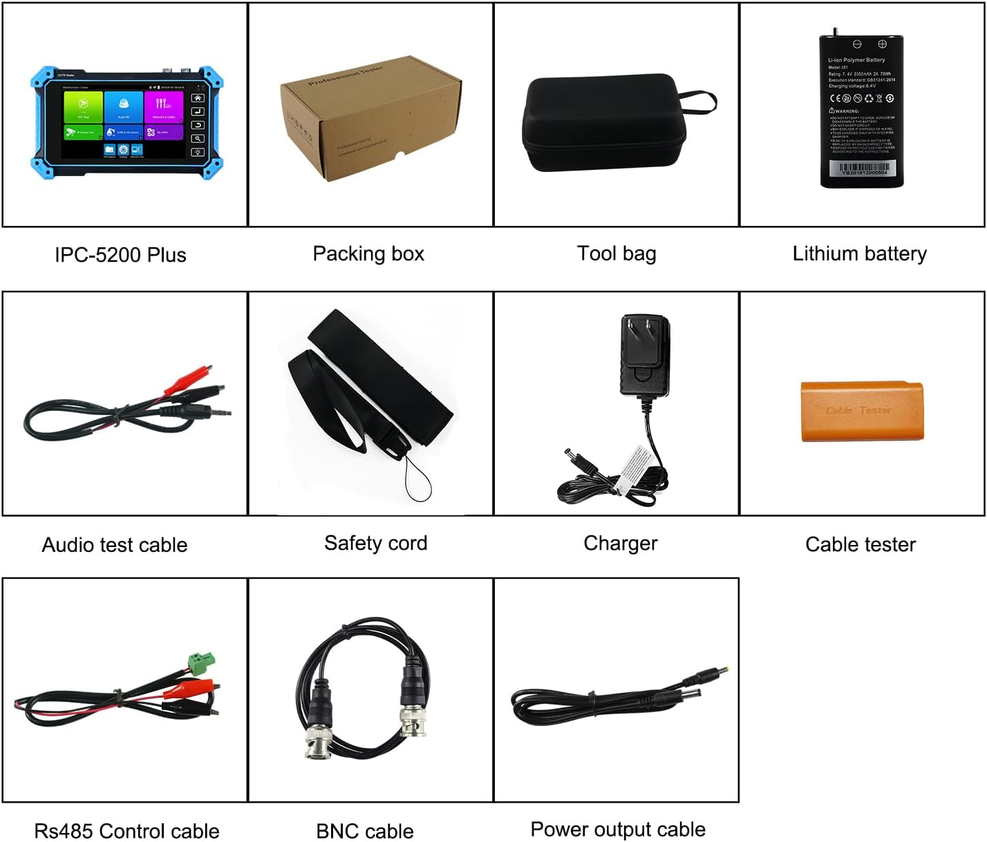 Max 4K 12MP IP digicam check Assist max 4K IP digicam check. IP Discovery/Fast OVIF/IPC check /RTSP play /Shopper APK. Fast Video,auto view the video, create testing report. HIK/DH digicam check instrument, assist modify HIK/DH digicam’s consumer identify, password, IP parameters,and so forth. CVBS 1 channel BNC enter, NTSC/PAL (Auto adapt). PTZ management, Assist RS485 management, Baud 600-115200bps, appropriate with greater than 30 protocols reminiscent of for PELCO-D/P, for Samsung, for Panasonic and so forth. HD coaxial check ( Solely TVI 5.0 assist coaxial audio check) Assist 8MP EX-SDI, HD-SDI, 3G-SDI, UTC management / name OSD menu. 8MP TVI/CVI/AHD digicam check, 3840 x 2160P 15FPS, UTC management/name OSD menu. Auto HD app, auto acknowledge HD coax digicam sort and backbone, assist snapshot, video document& playback, coaxial PTZ & name OSD menu. HDMI enter & VGA enter Assist 1 channel HDMI enter, assist 4K 30FPS. Assist 1 channel VGA enter, assist 1920 x 1200P 60FPS. PoE/Energy enter/Energy output PoE energy output, 48V PoE energy output, max energy 25.5W. DC12V/1A energy enter. DC12V/3A energy out, provide briefly energy for the digicam. Energy administration Show DC 12V enter & output voltage and energy in actual time. Cable check RJ45 Cable TDR Take a look at: it could possibly check cable pair standing, size(180m), attenuation, reflectivity, impedance, skew. UTP Cable Tester: check UTP cable connection standing and show on the display, assist detect the near-end, mid-end and far-end fault level of the RJ45 cable plug. Information monitor Captures and analyzes the command knowledge from controlling system, can also ship hexadecimal. Battery/Display/CPU RAM EMMC Constructed-in 7.4V Lithium-ion battery,3350mAh, 27.79Wh. 5.4 inches IPS contact display. 1.2GHz 4-core CPU, 1GB RAM, 8GB FLASH(EMMC). Wi-Fi In-built WIFI, speeds 150M, show wi-fi digicam picture, assist create WI-FI hotspot. Audio check 1 channel audio sign enter, check whether or not sound regular. Community check instruments Assist hint route, Hyperlink monitor, DHCP server, port flashing, Ping check, IP scan, and so forth. TesterPlay Display projection: tester, cell phone and PC show on the similar time (just for android model cell phone) Operation language OSD menu language: English, Korean, Russian, Italian, French, Polish, Spanish, Japanese, Deutsch, Turkish Portuguese, Czech and so forth Widespread instruments Constructed-in flashlight, calculator, audio recorder, audio participant, vedio participant,and different widespread instruments. A number of Preview Multi-preview APP helps synchronized preview of a number of cameras, playback of the digicam 2 to three frames per second, as much as 32 simultaneous preview.