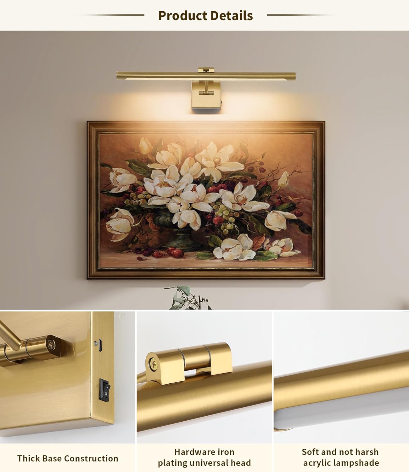 Adjustable Route of Lighting: The portray lights cordless with 270°rotation head and a swivel up and down 180°swing arm,you possibly can rotate it up and down flexibly to regulate the lighting path to your required place,which is your best option for the wall mild for use as photograph mild.